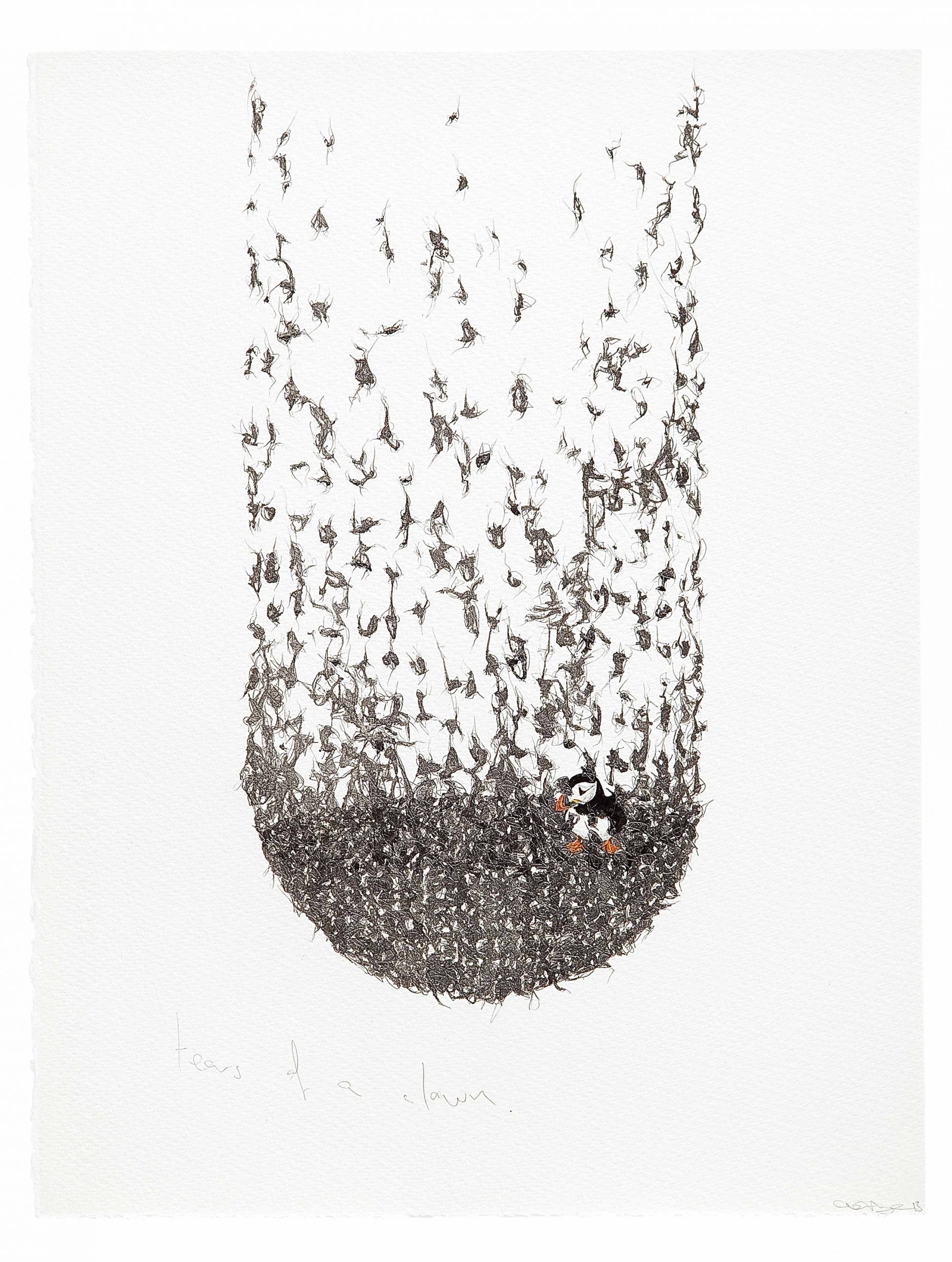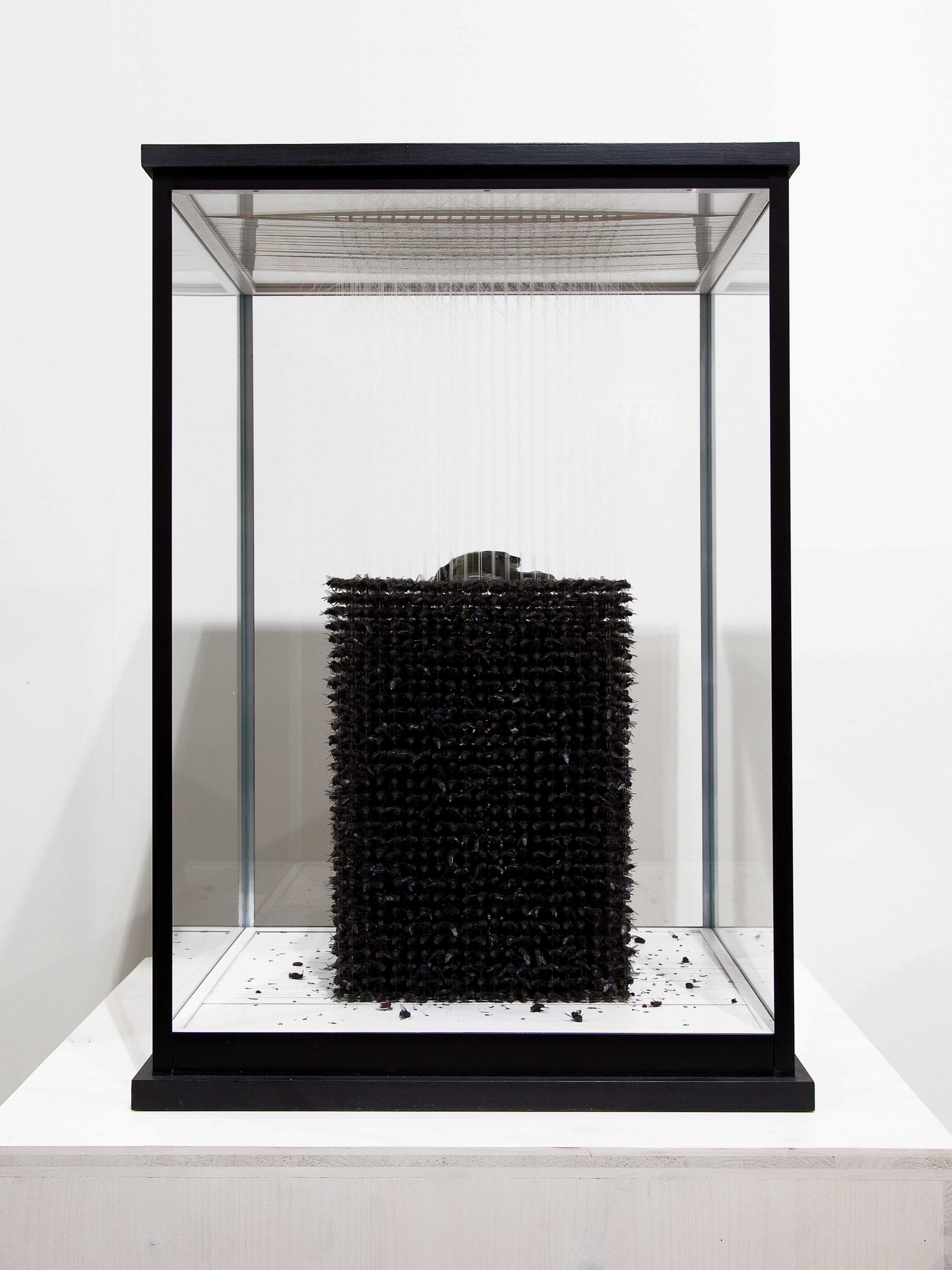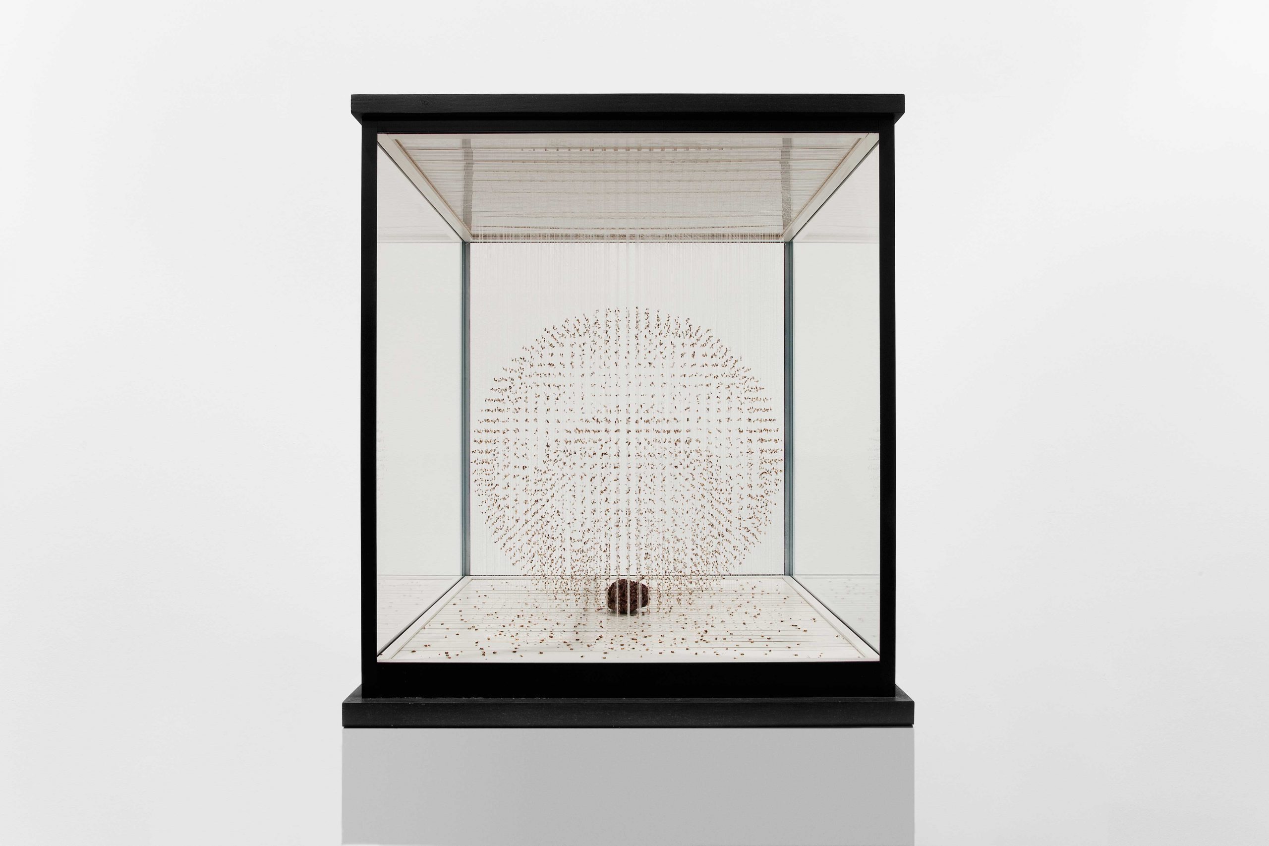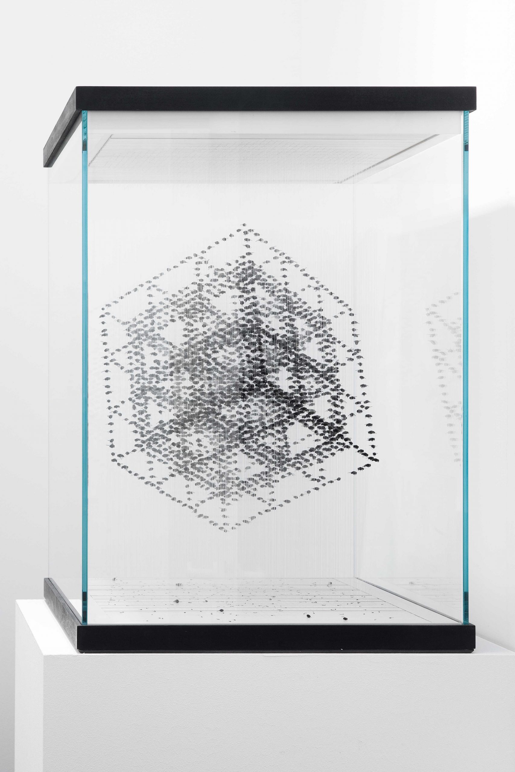 Fruit flies, nylon, in vitrine, 78.5 x 58.4 x 68.4 cm, 2013