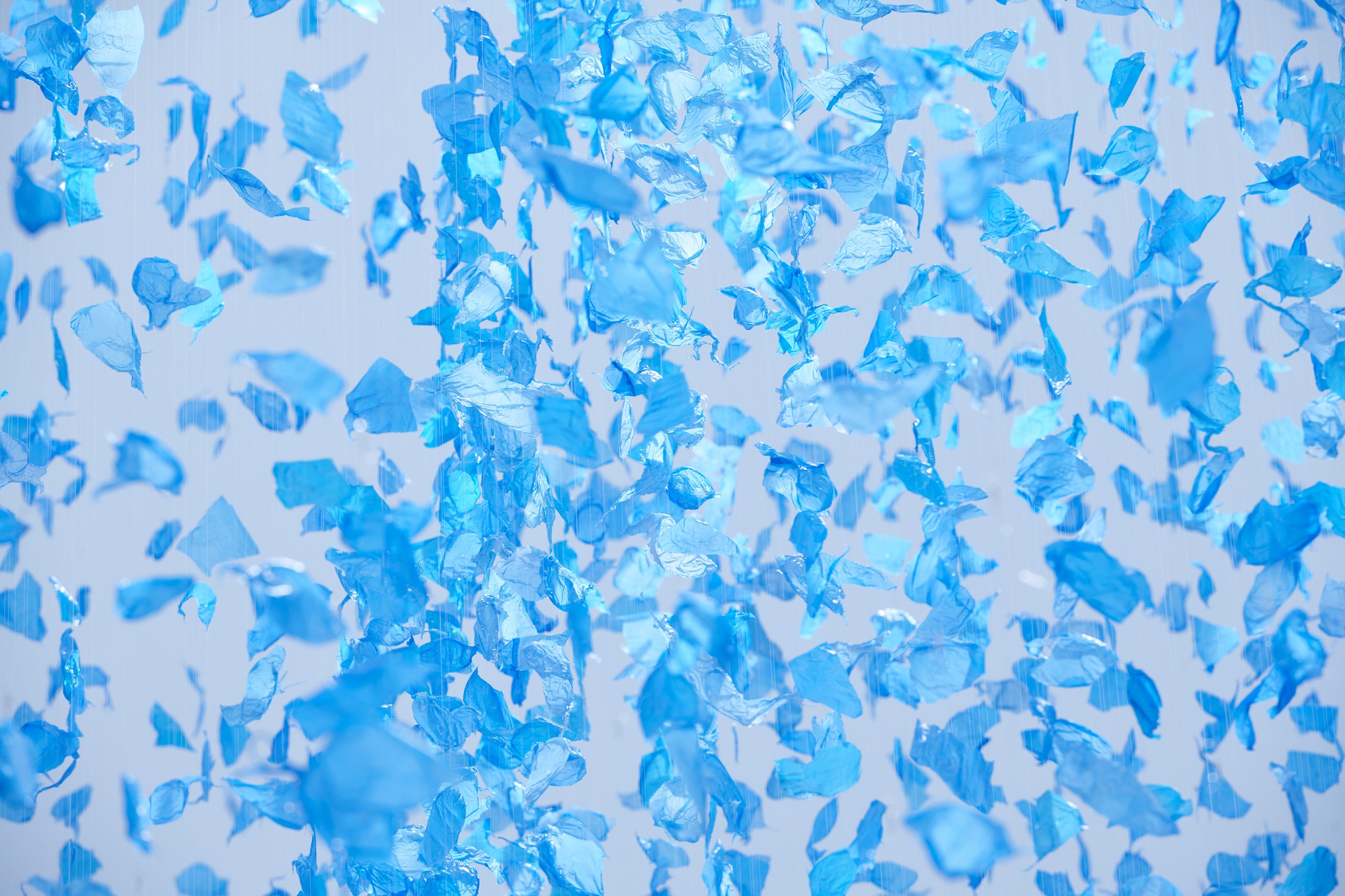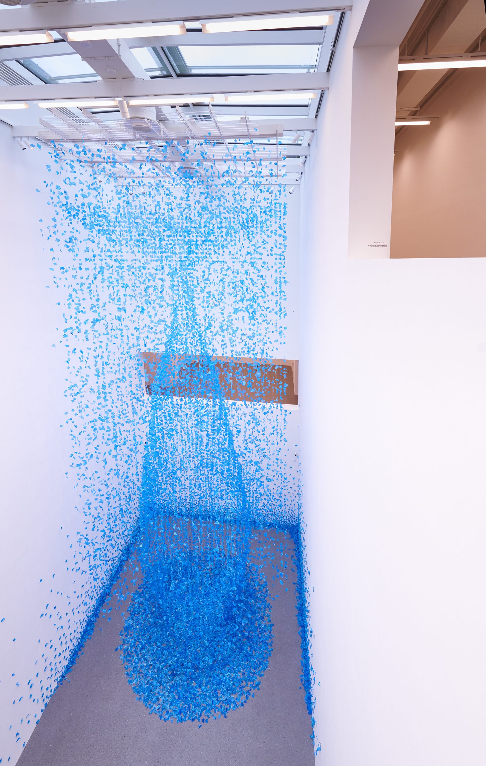 2021, Torn post-consumer plastic, nylon, lead, 1270 x 500 x 500 cm