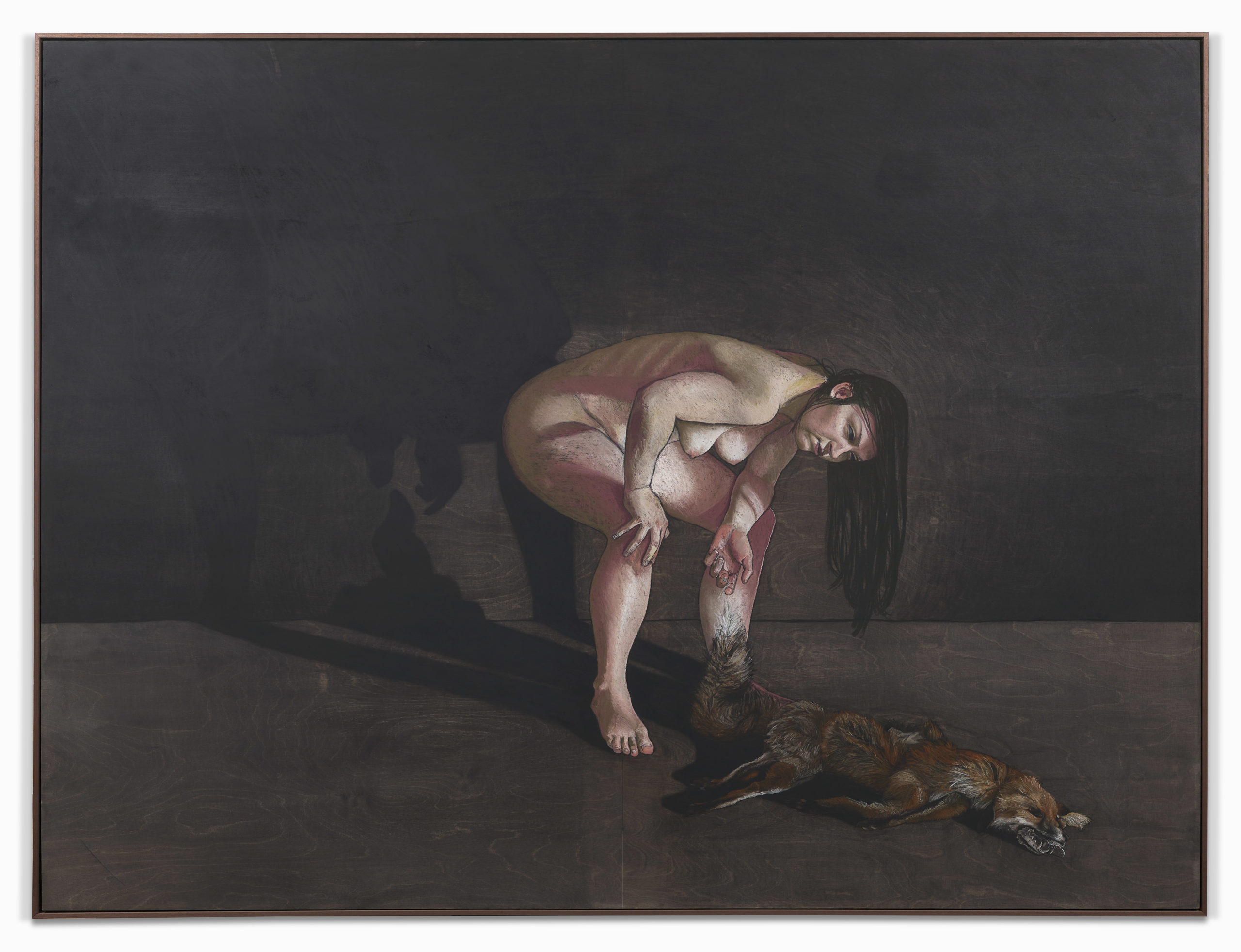 2023, Pastel, charcoal, on stained birch board, 183 x 243 x 6 cm