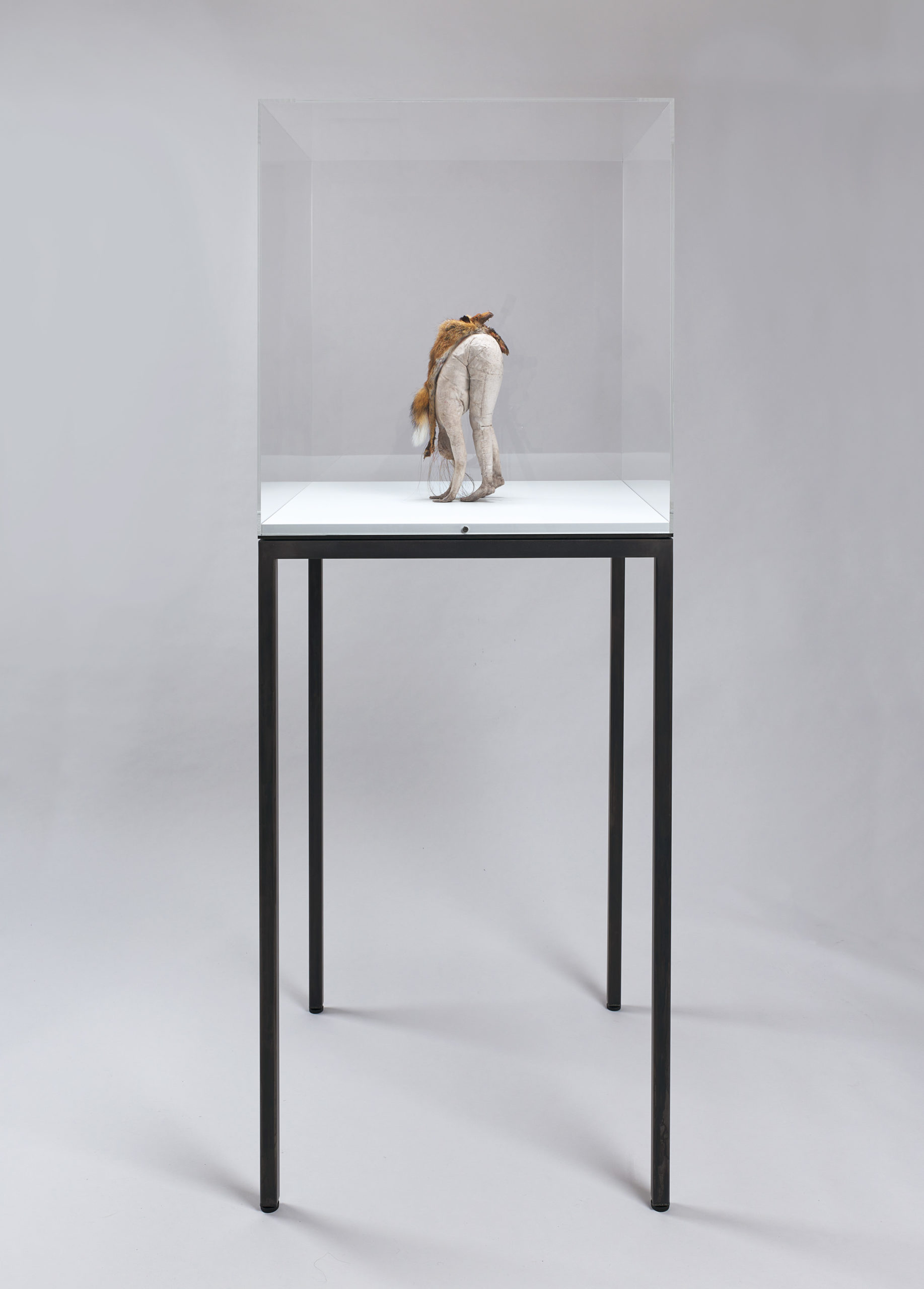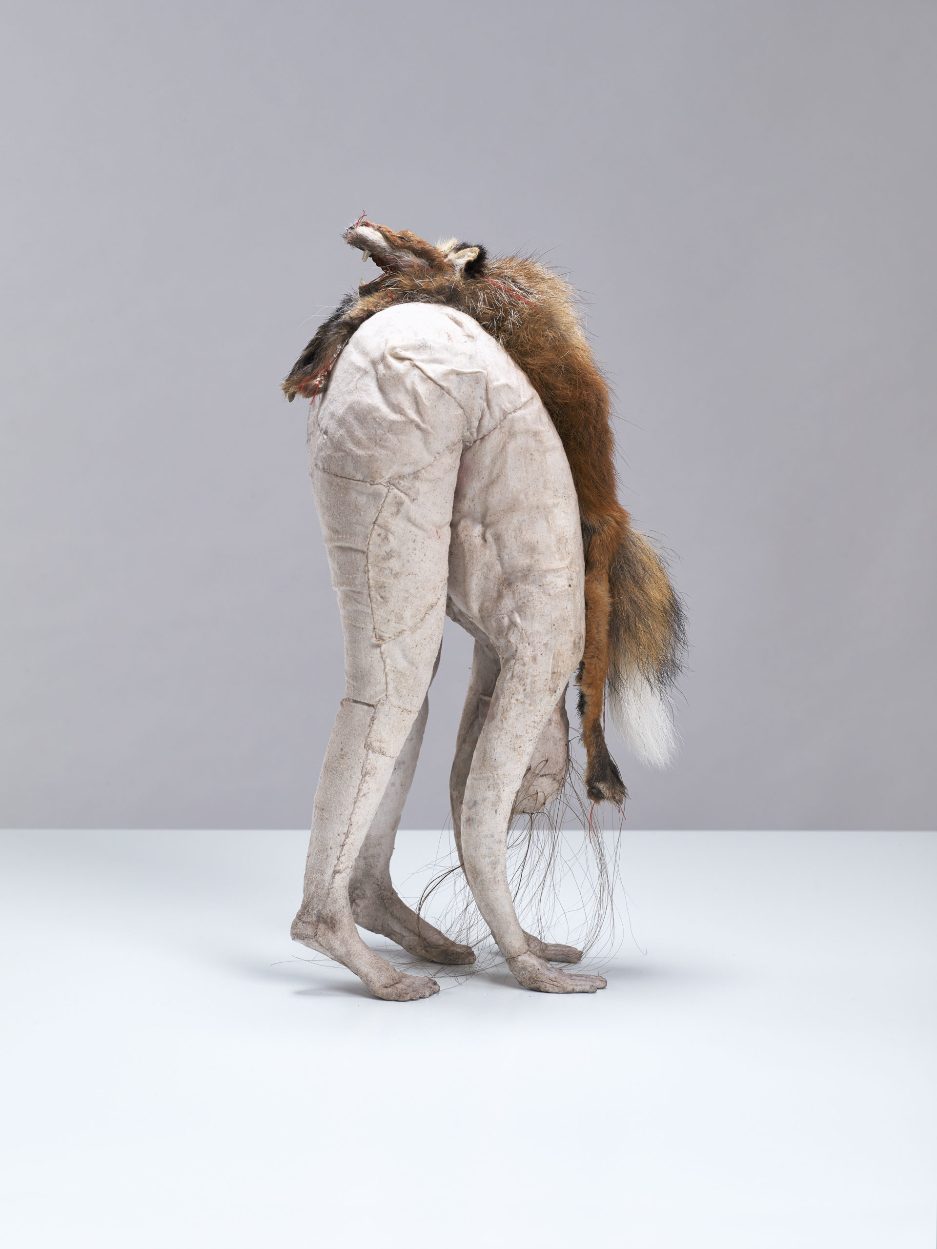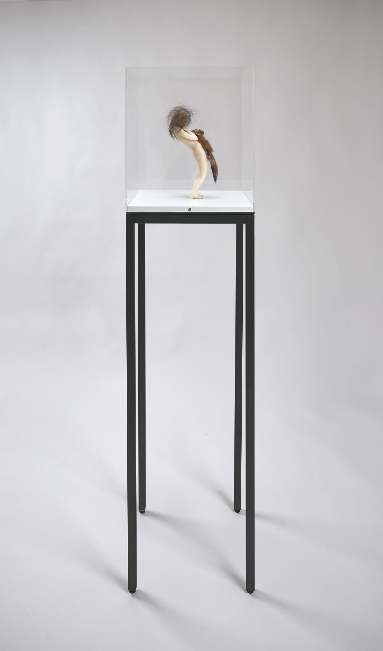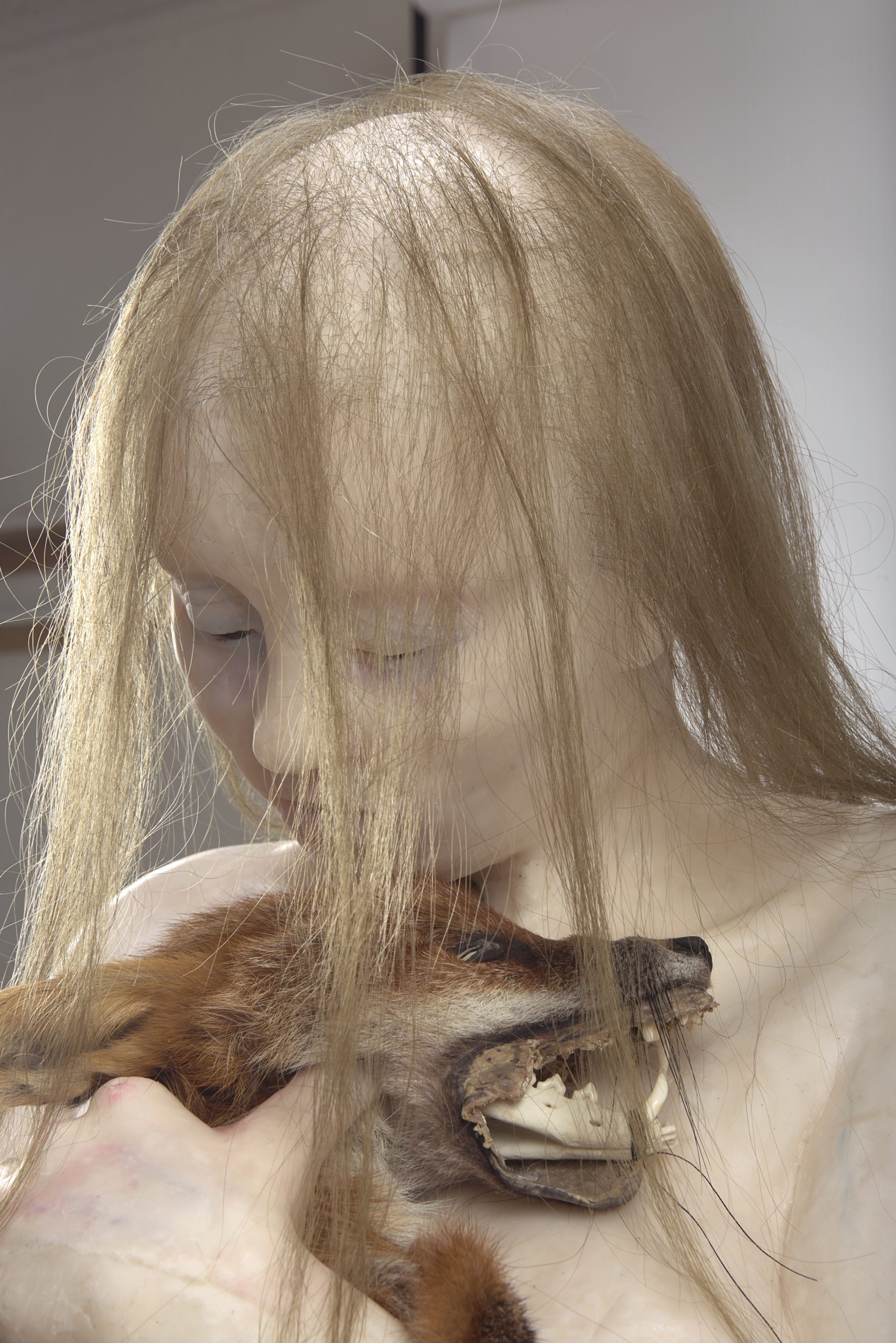 Wax, human hair, fox skin, mixed media, in vitrine, 173 x 46 x 46 cm
