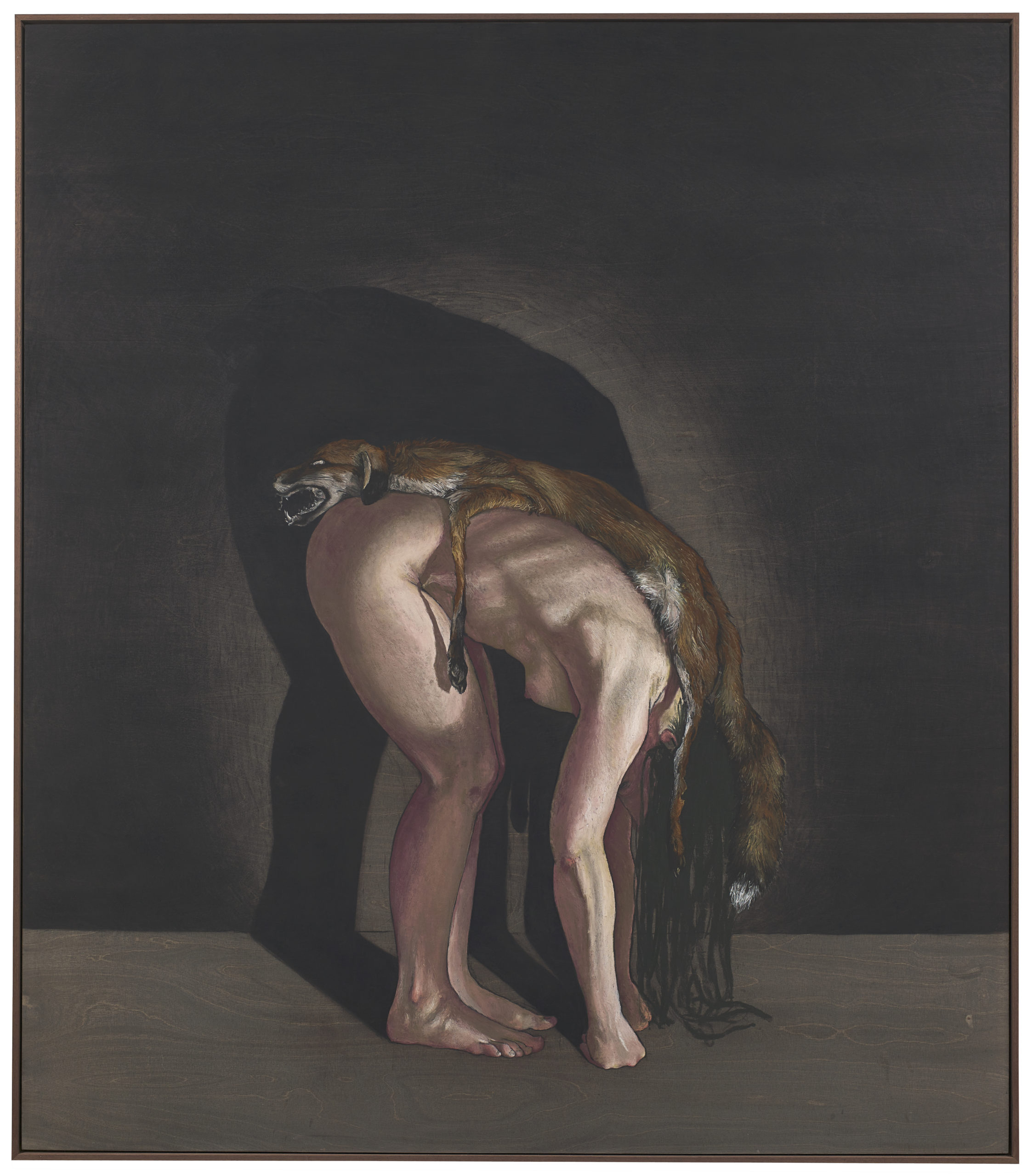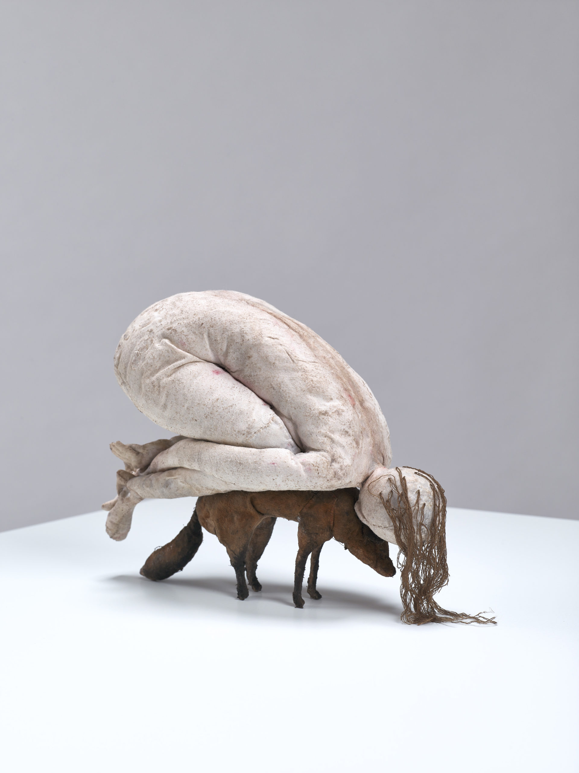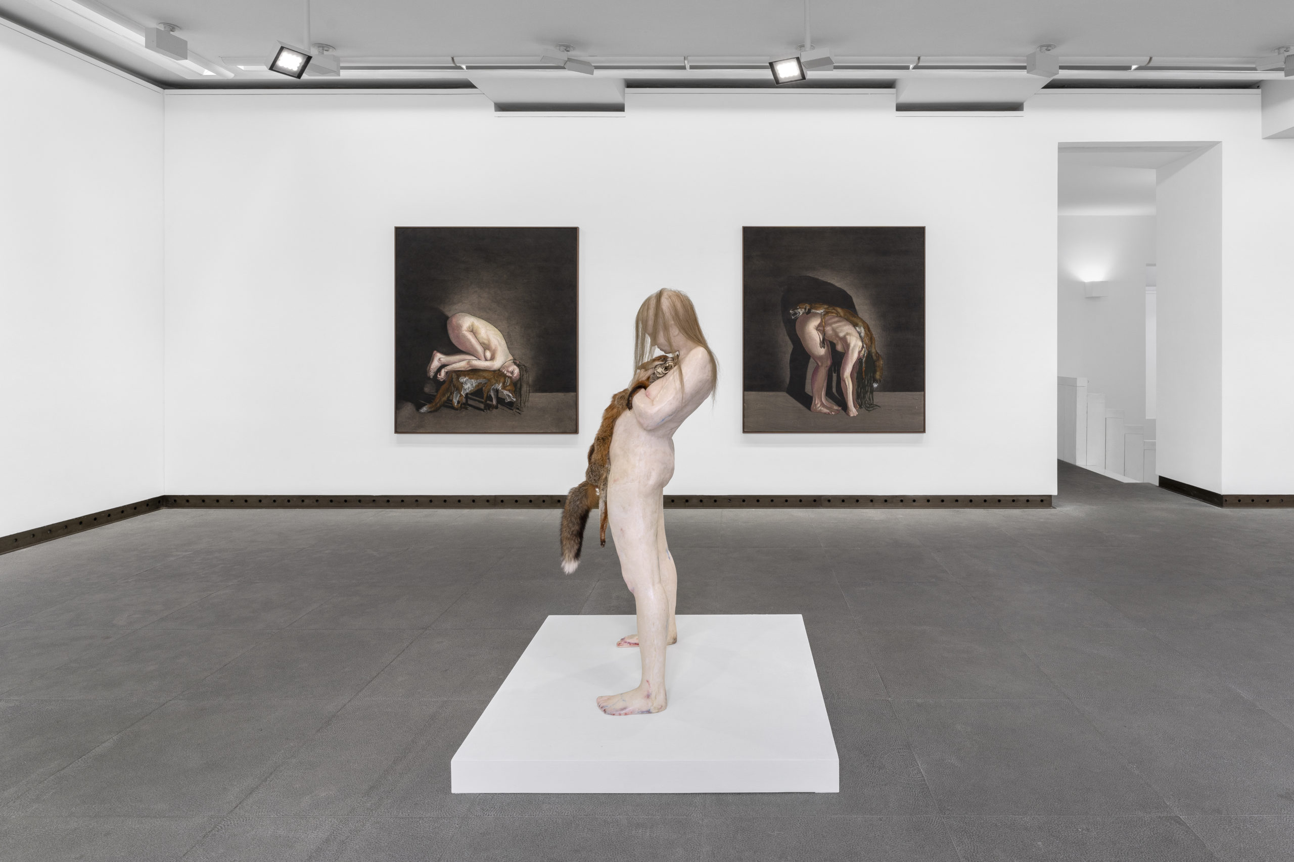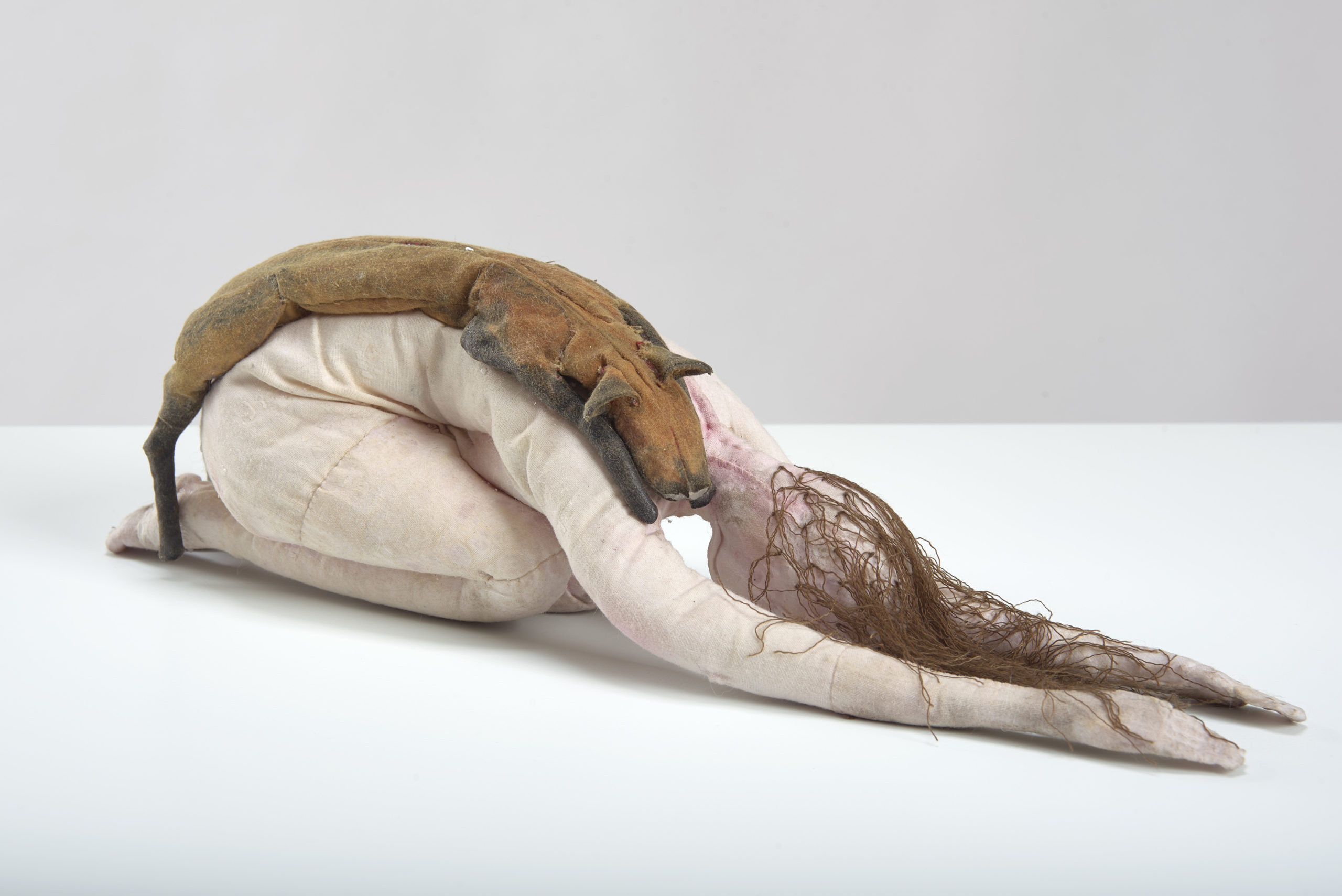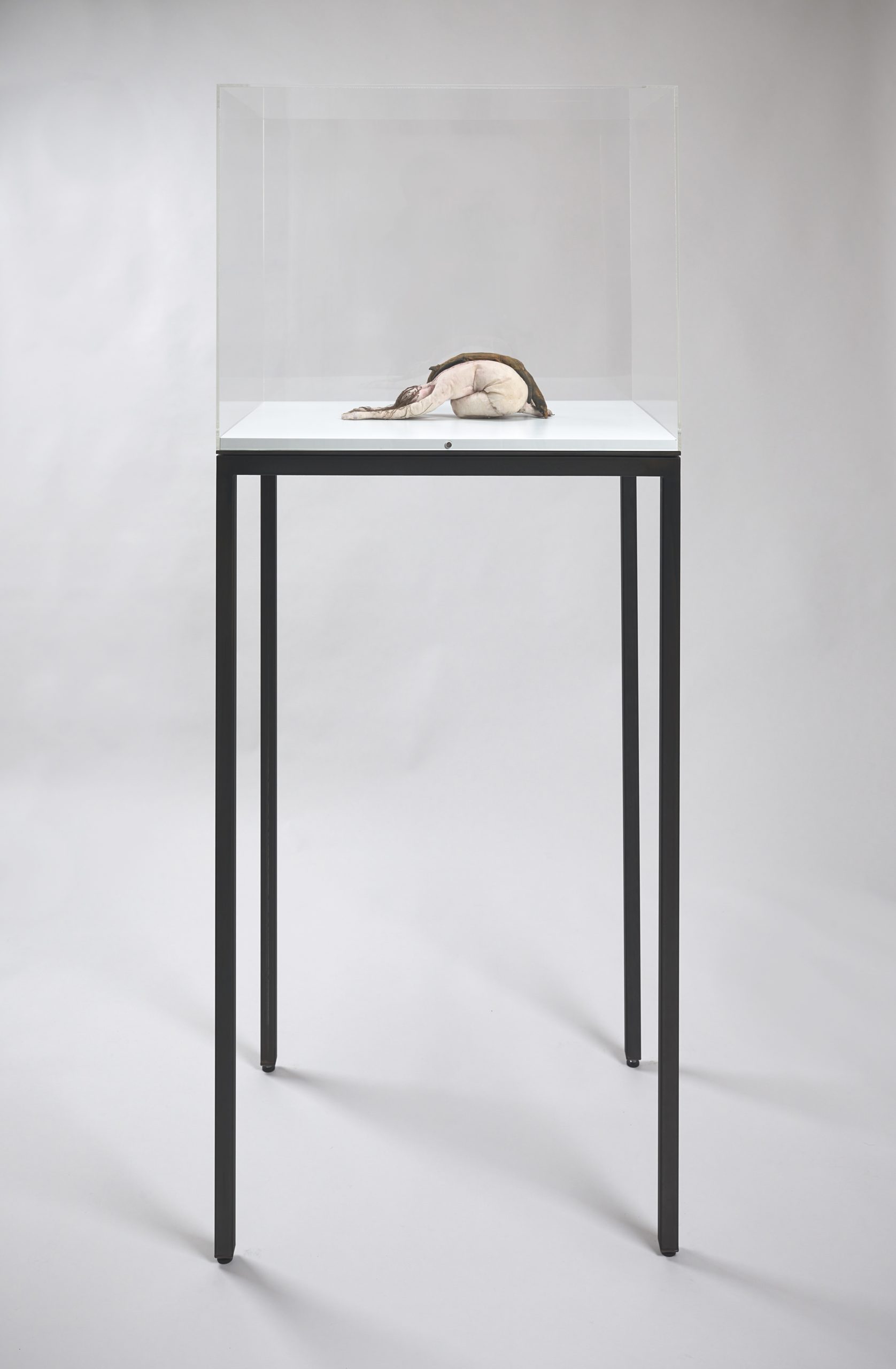 Wax, human hair, fox skin, mixed media, in vitrine, 173 x 46 x 46 cm