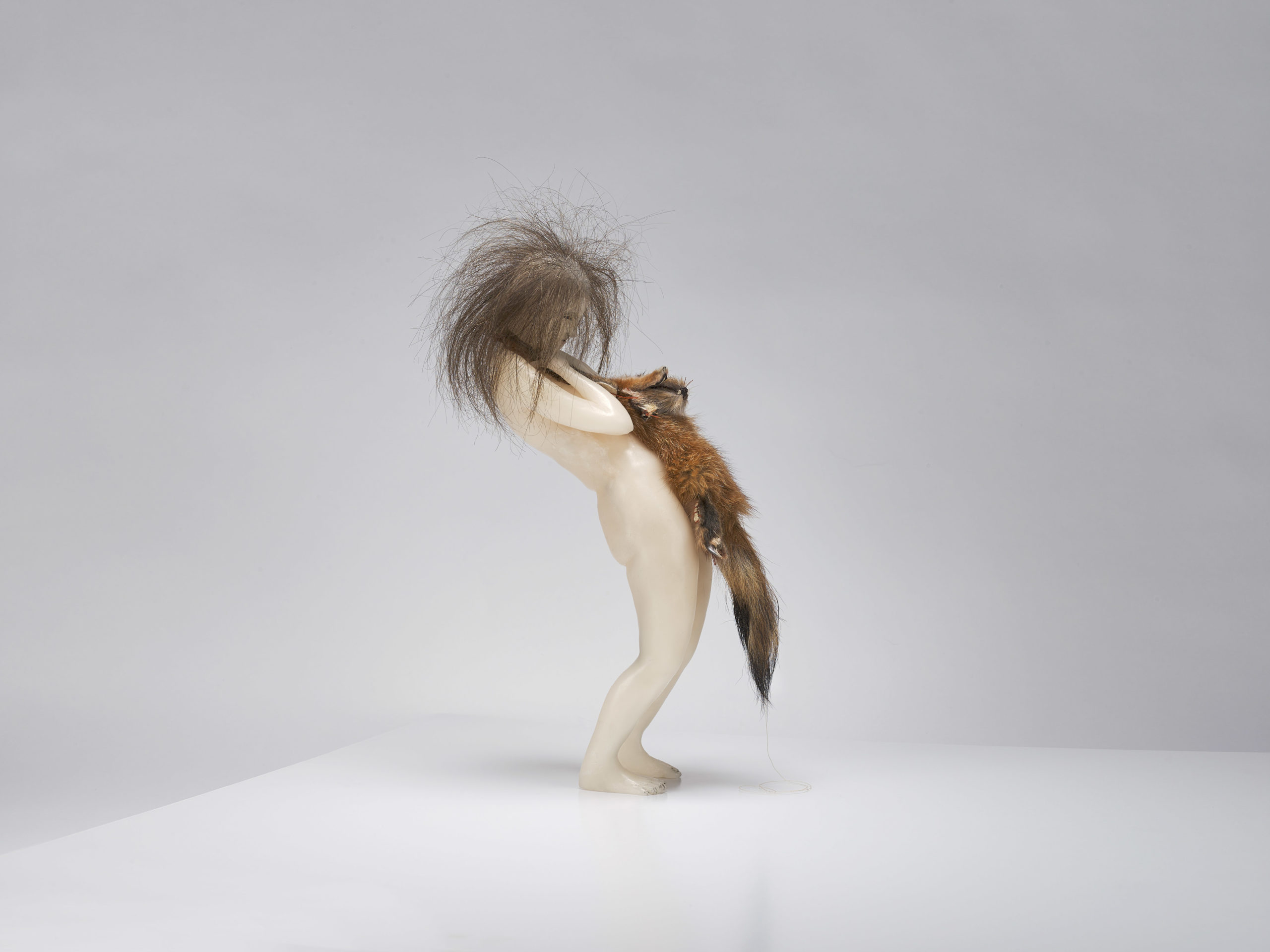 Wax, human hair, fox skin, mixed media, 165 x 50 x 55 cm