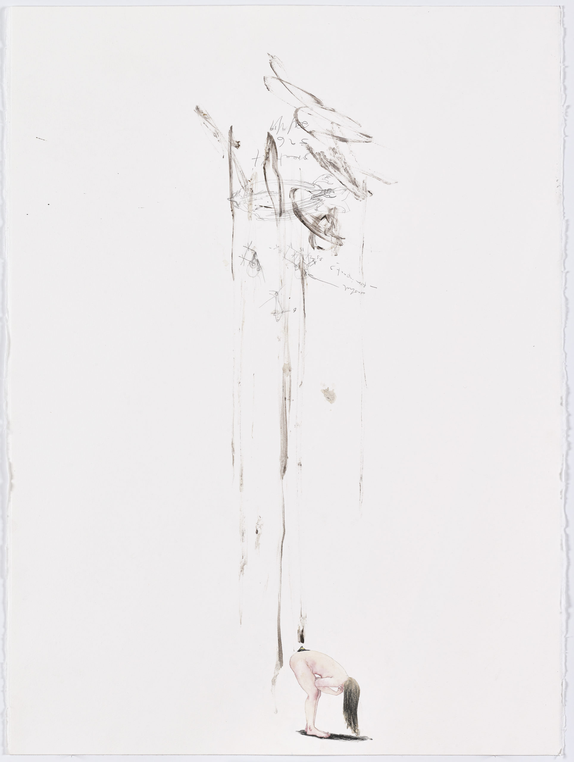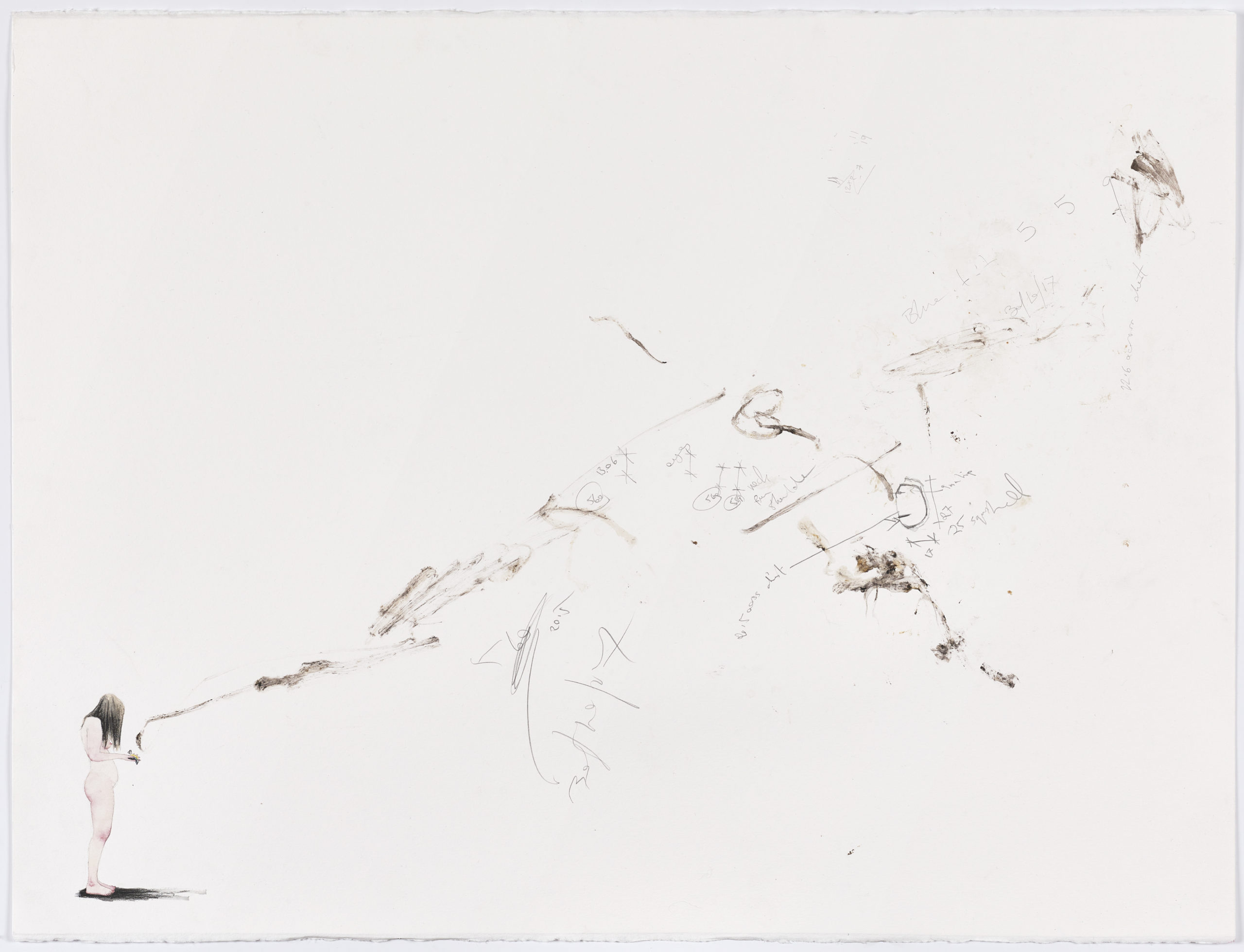 2023, Traces of taxidermy process, watercolour, pastel, pencil, on paper, 76 x 57.4 cm