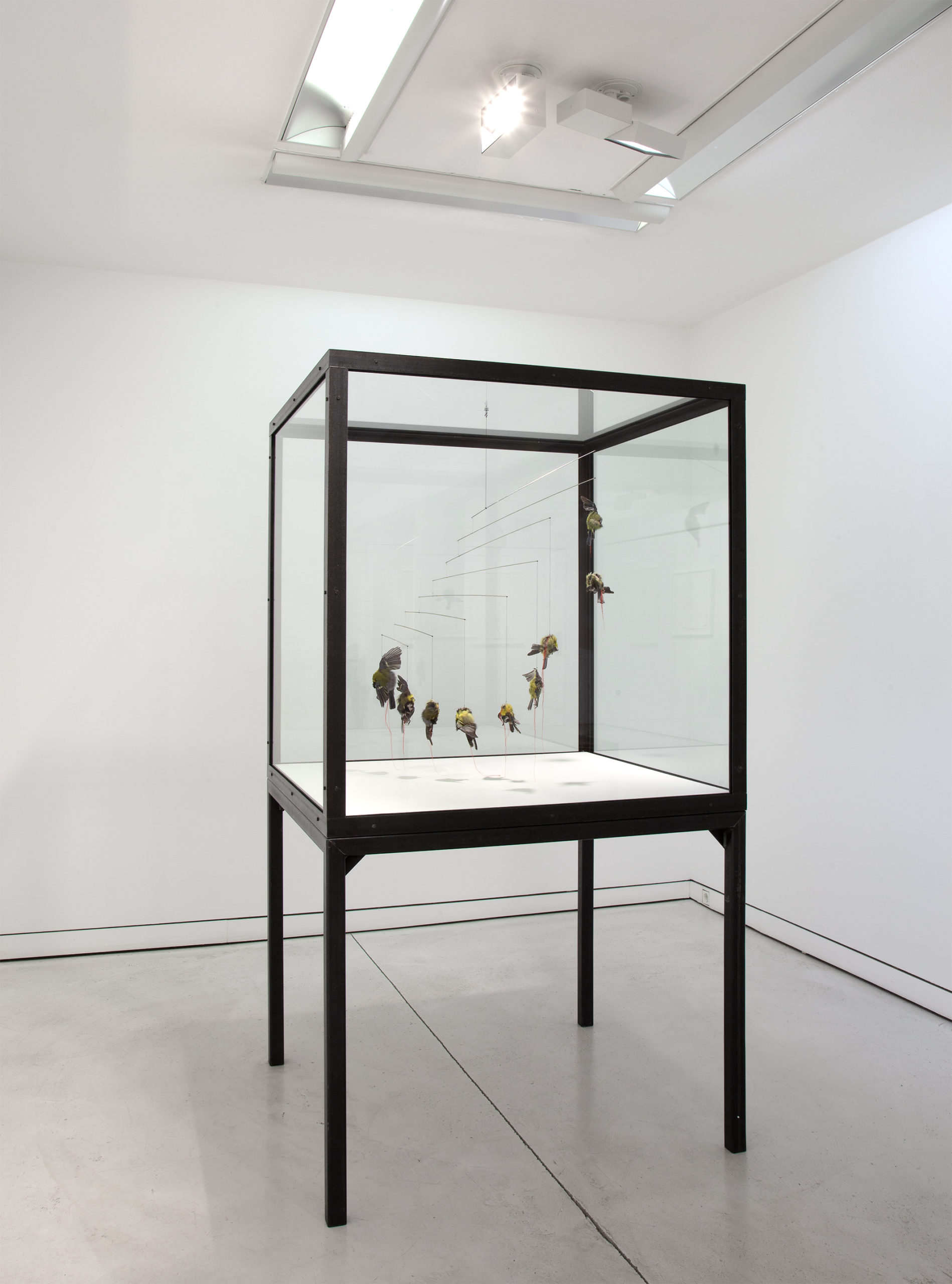 Bird skins, mixed media in vitrine, 180 x 90 x 100 cm
