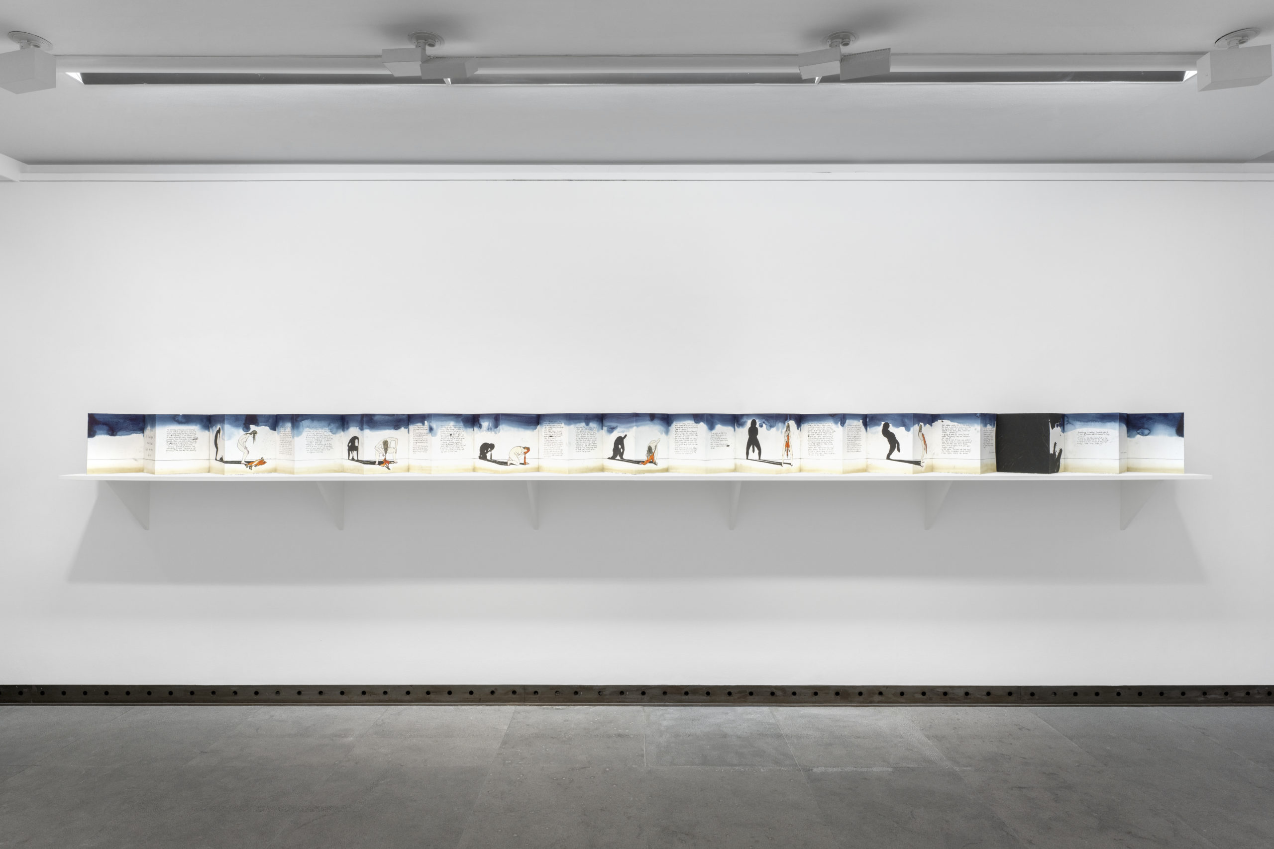 2023, 32 page concertina fold book, drypoint and collagraph with hand colouring, 32 x 565.6 x 17.7 cm