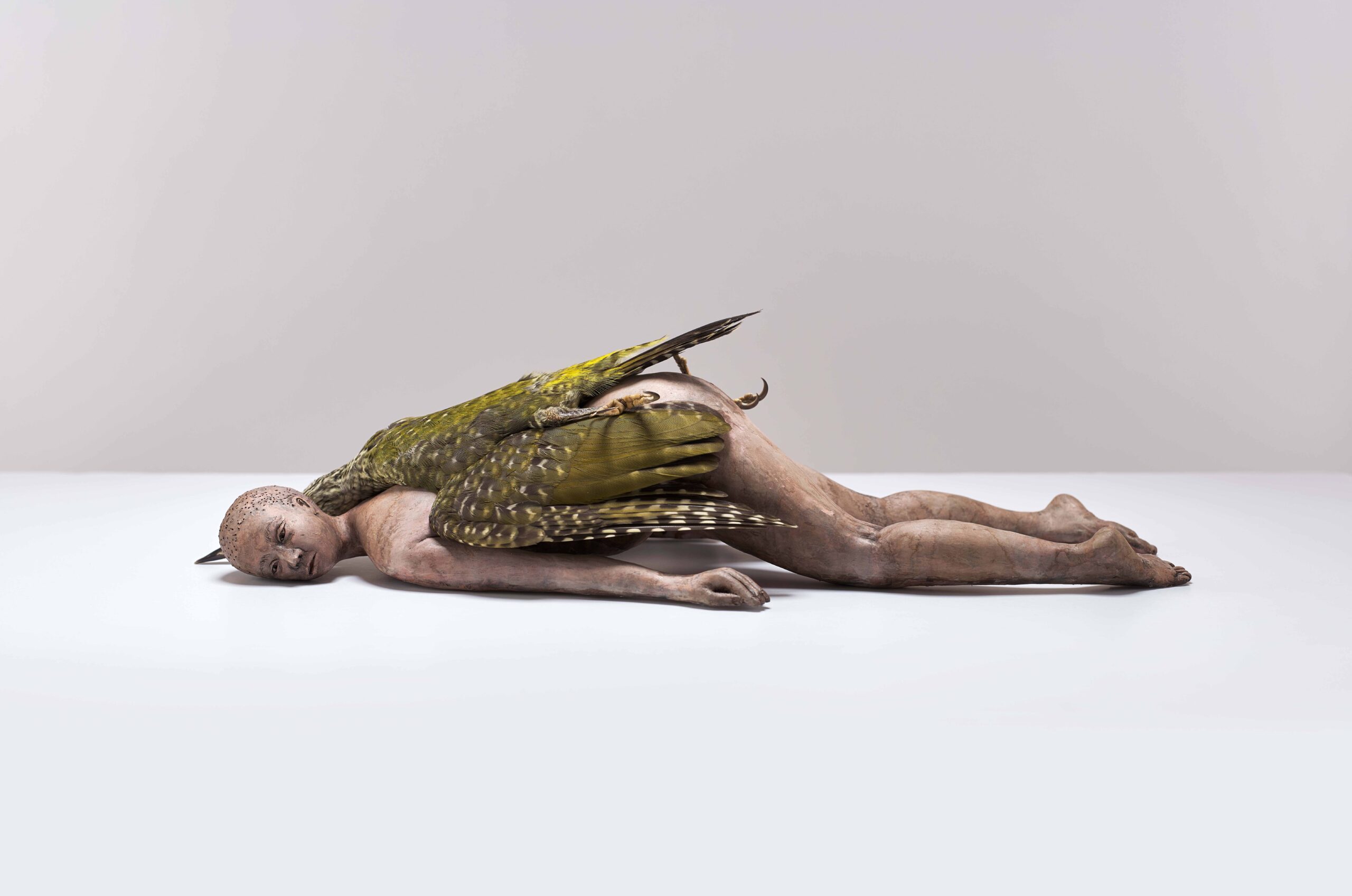2024, Bird skin (Green Woodpecker), painted ceramic, 9 x 18.6 x 41.4 cm