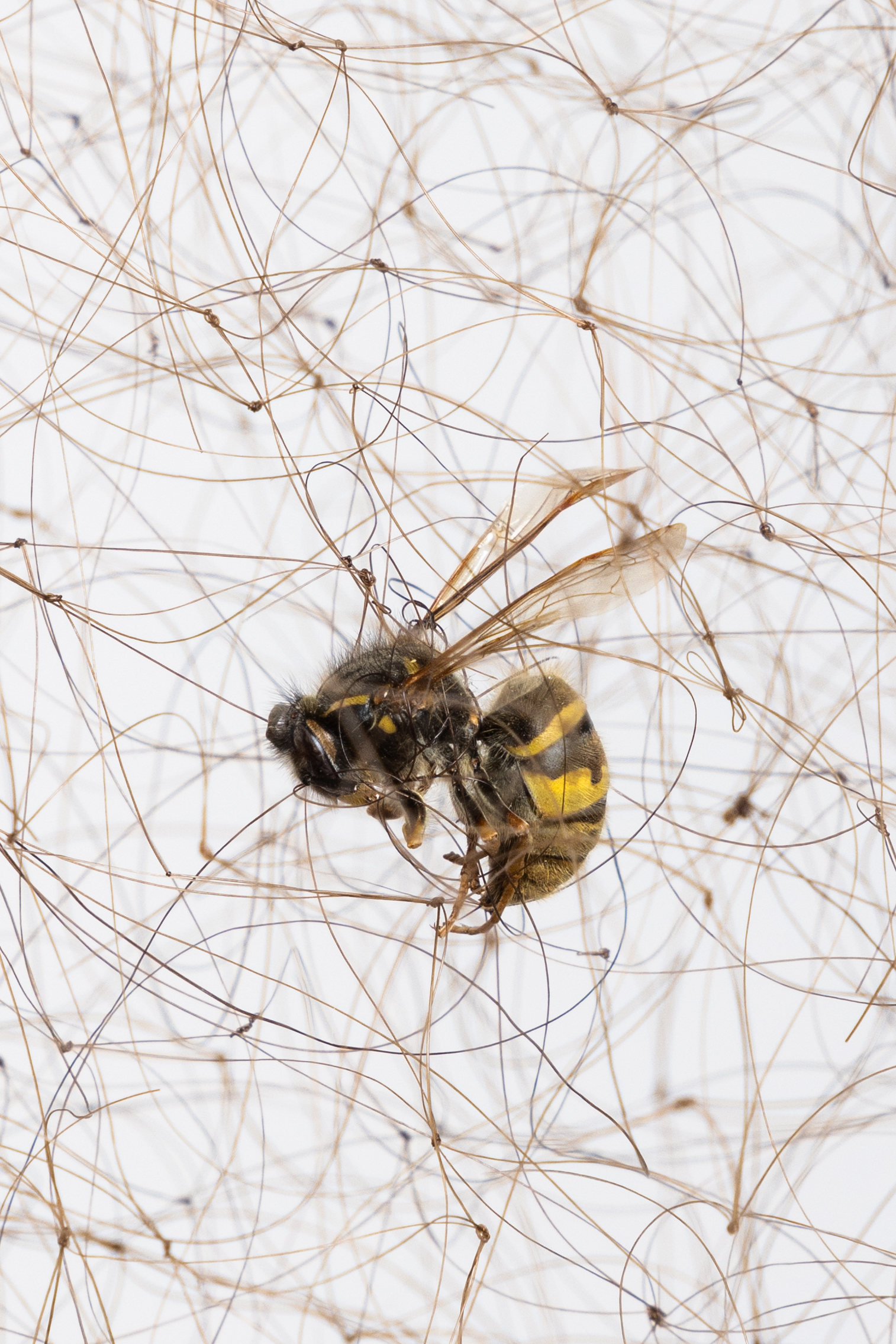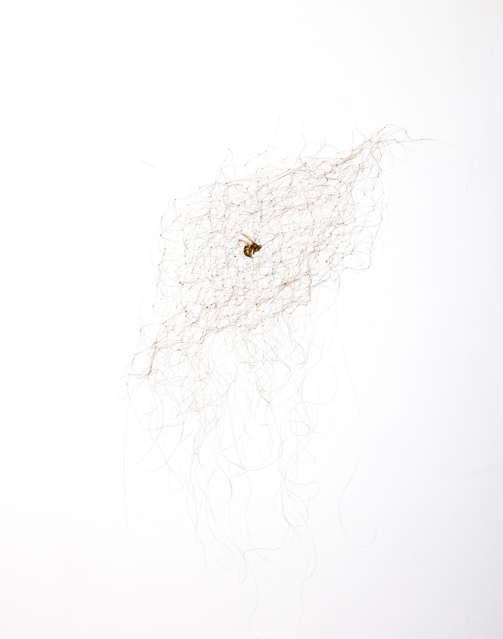 2025, Human hair, wasp, 38.5 x 28 x 11.5 cm