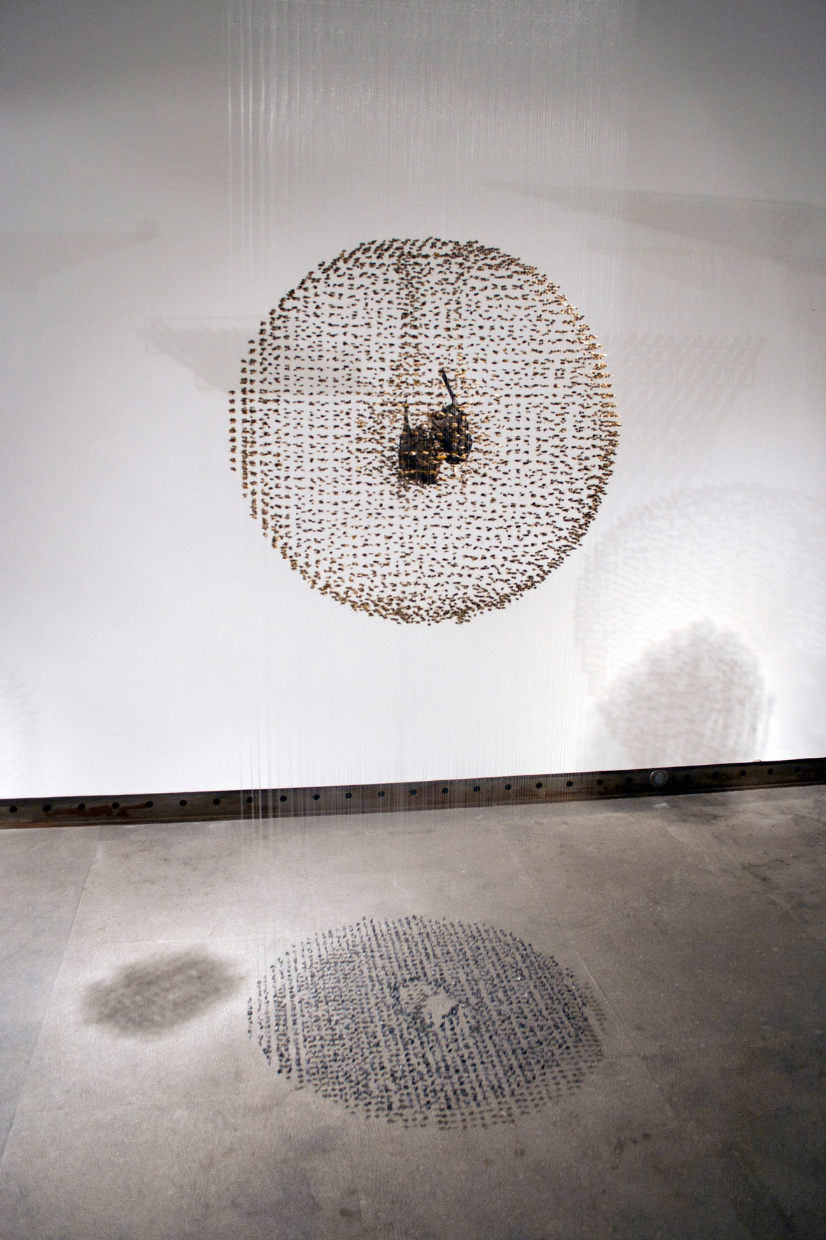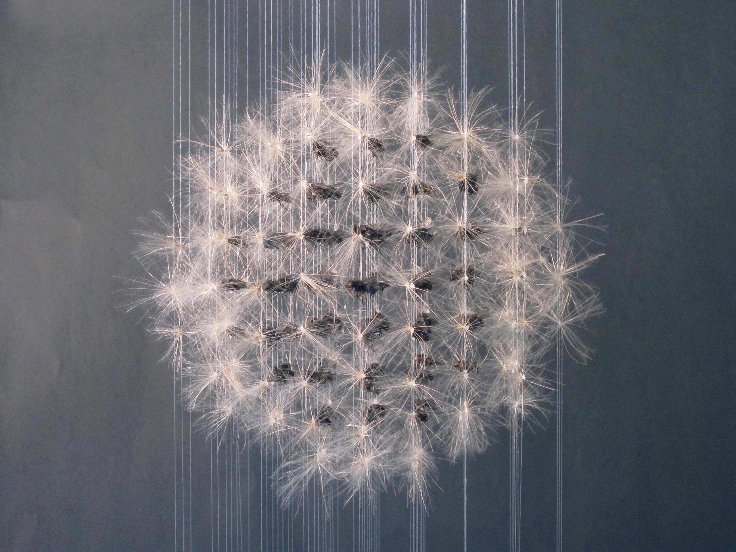 Thistle seeds, bluebottles, nylon, lead, acrylic, 230 x 18 x 18 cm, 2012