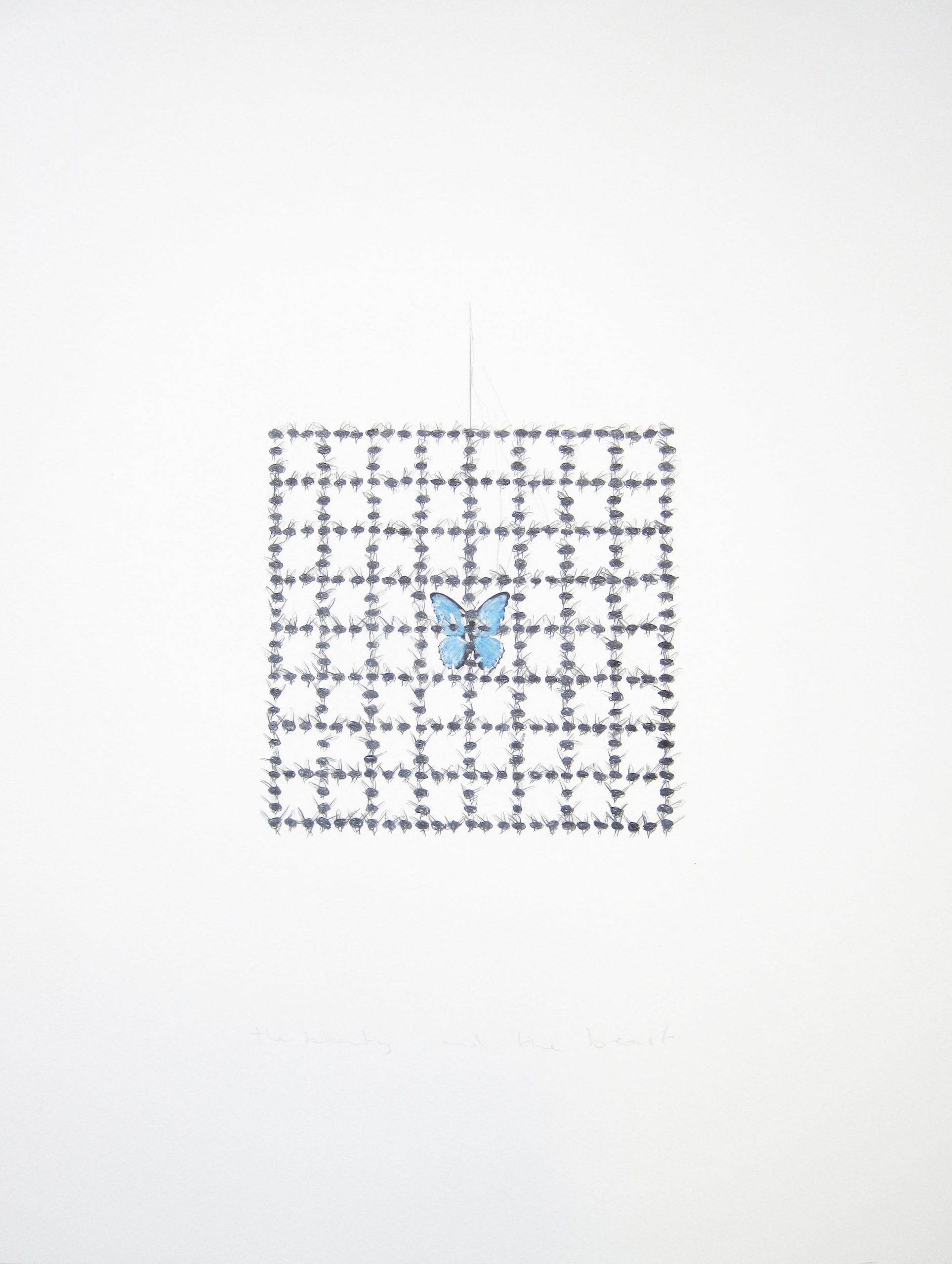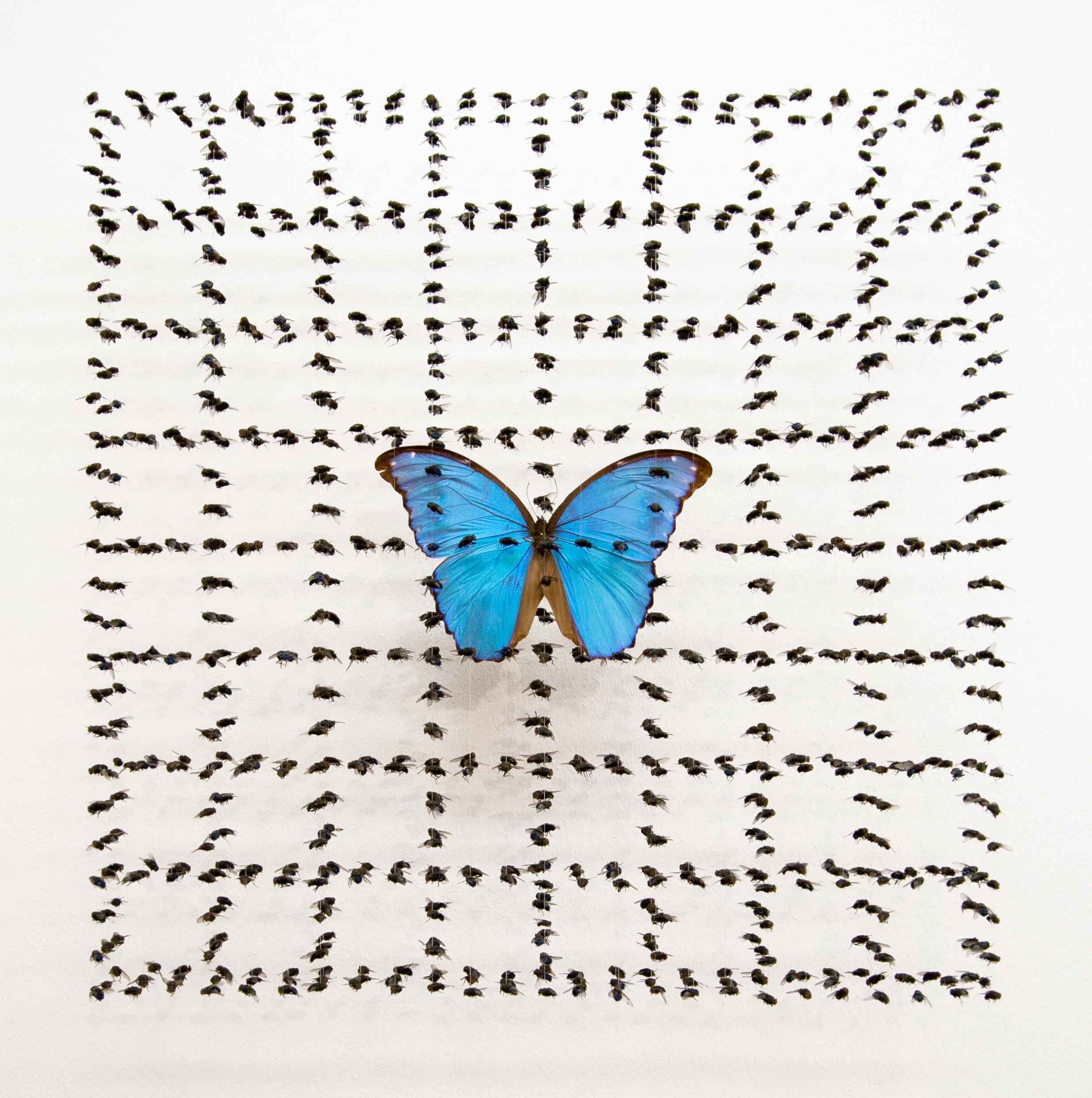 Bluebottles, Morpho butterfly, nylon, lead, acrylic, 102 x 52 x 9 cm, 2012