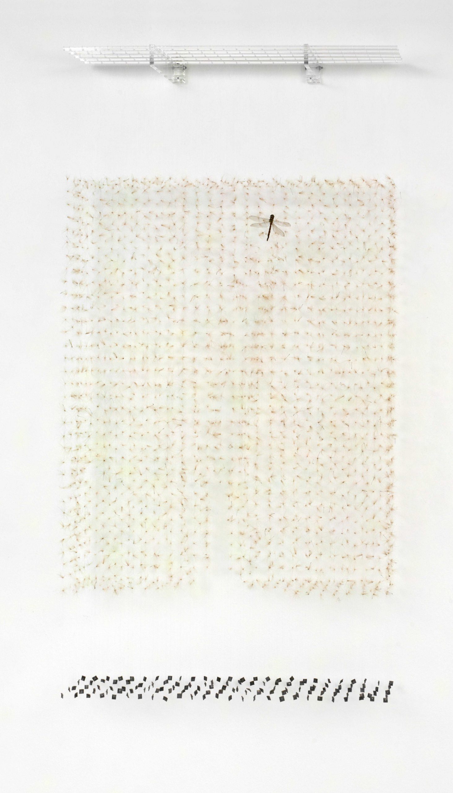 Dragon fly, thistle seeds, nylon, lead, 155 x 78 cm, 2014