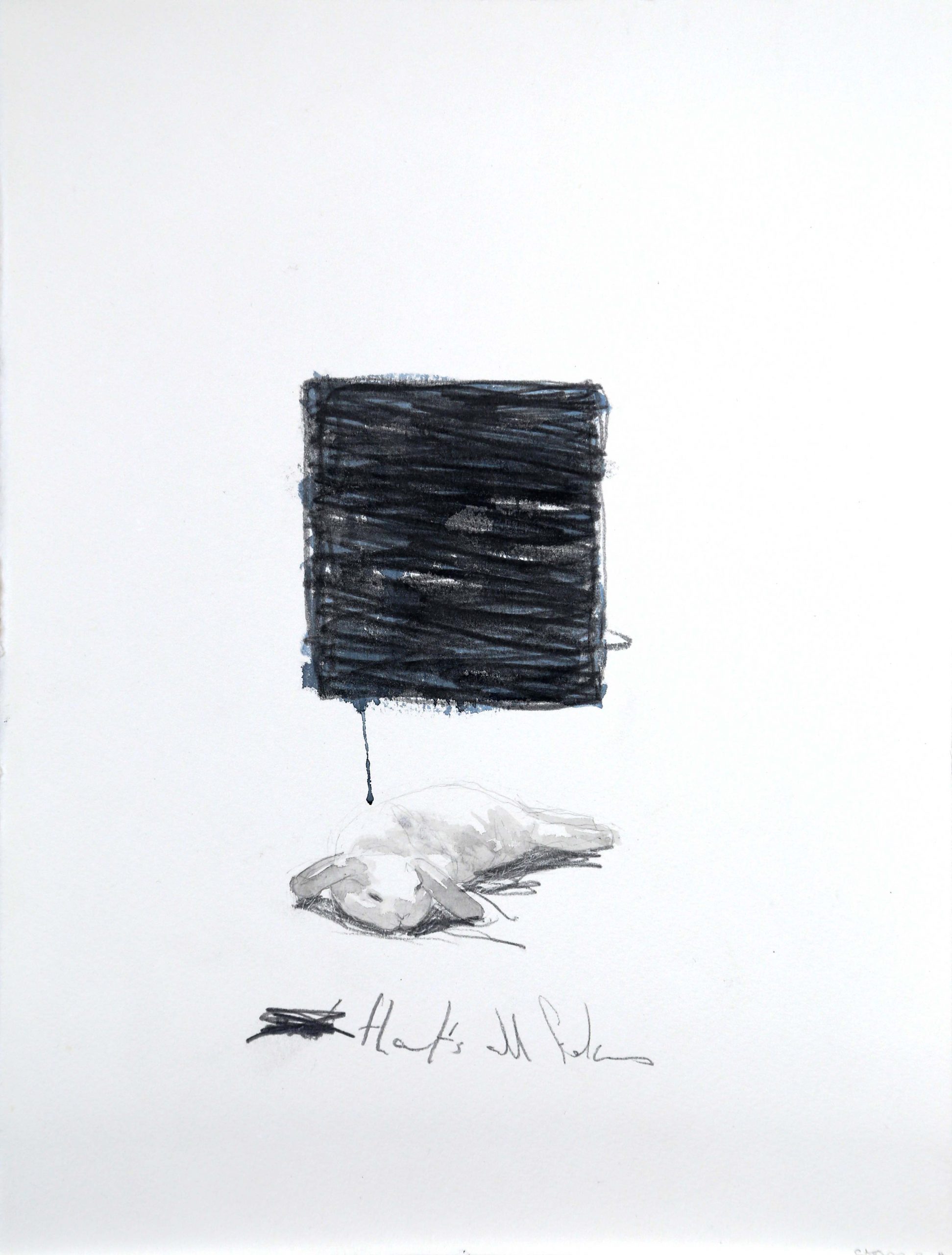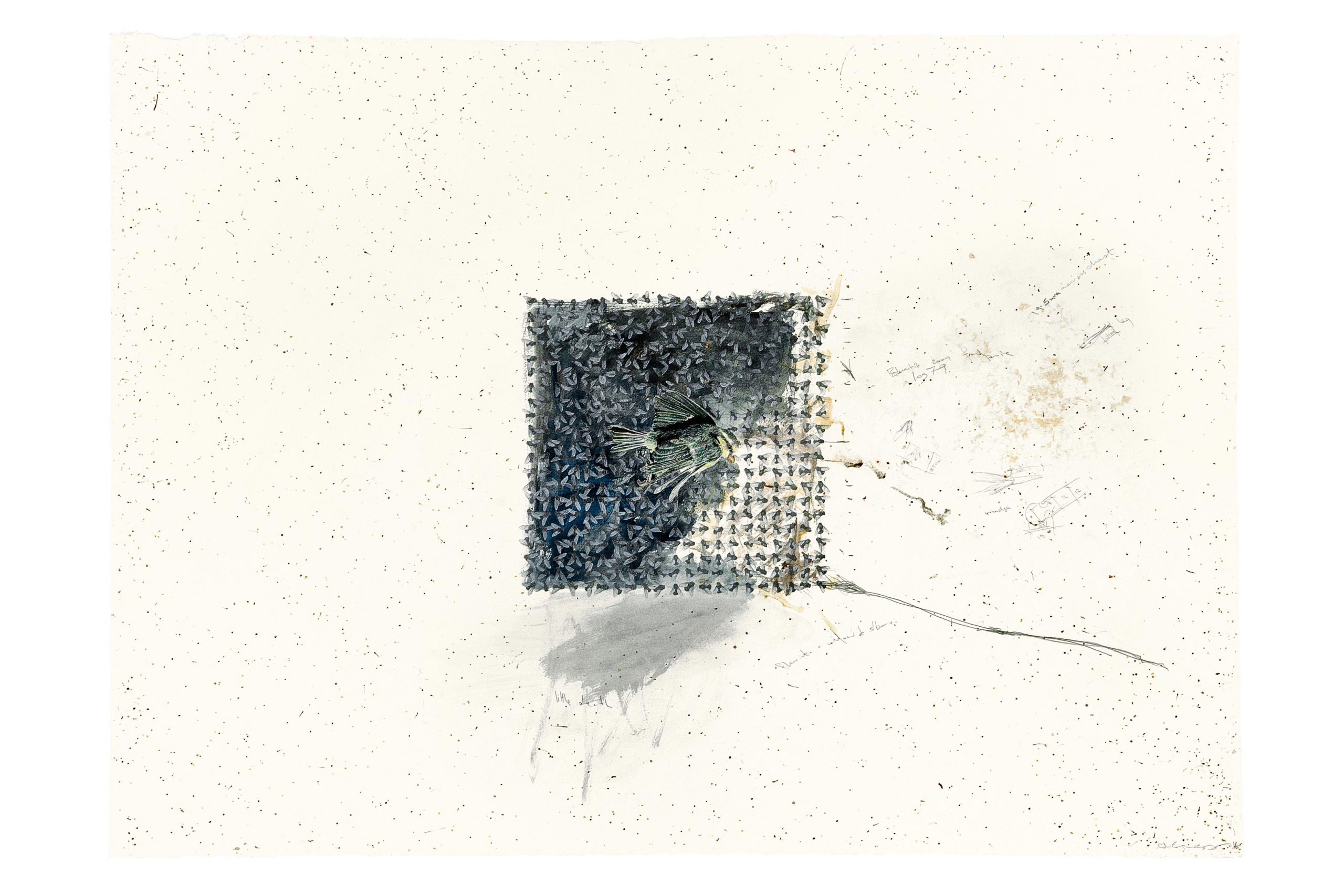 Pencil, watercolour, egg tempera, taxidermy residues on paper, 57 x 77 cm, 2014