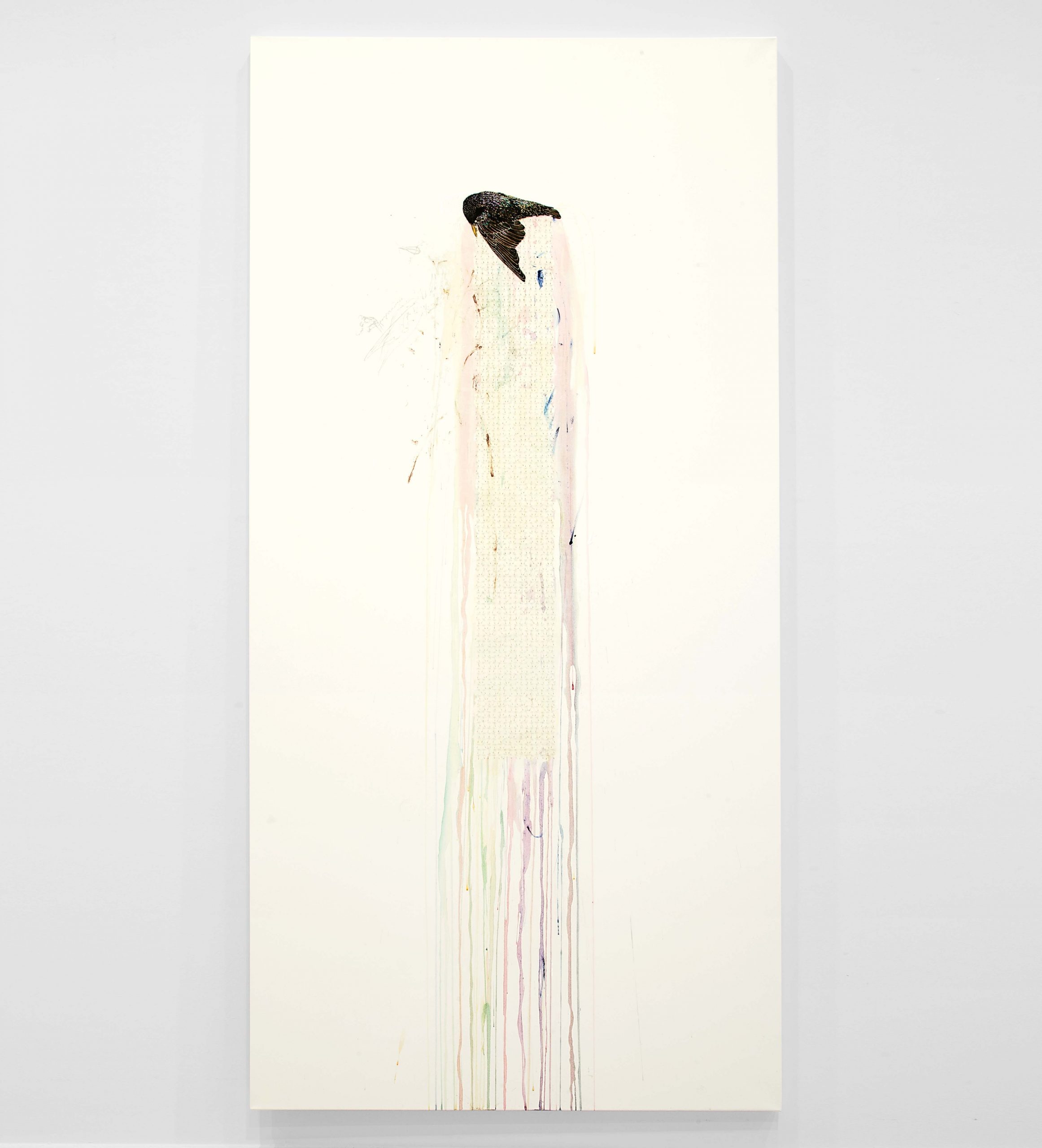 Pencil, egg tempera and taxidermy residues on paper on canvas, 200 x 100 cm, 2014