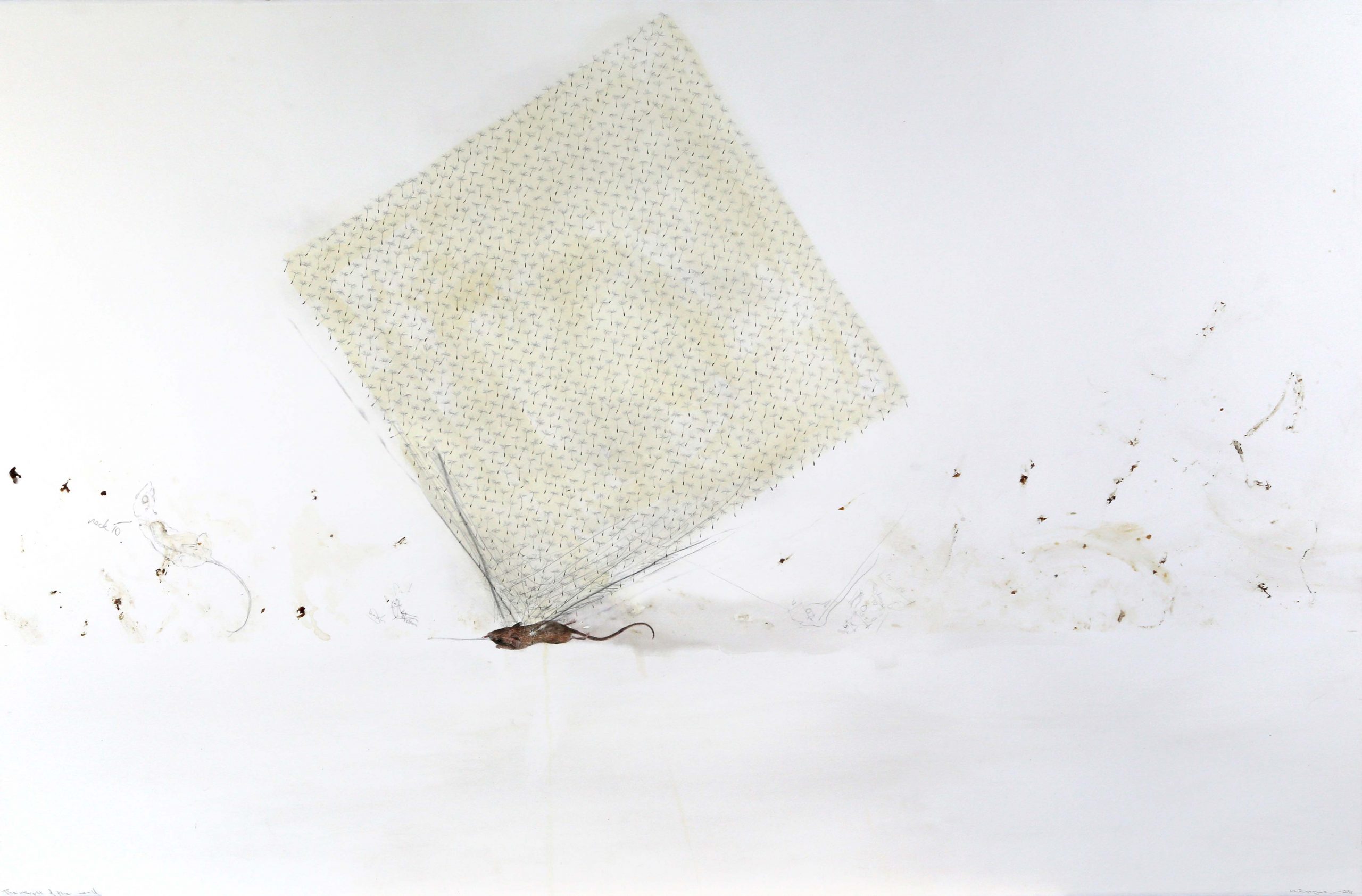 Pencil, watercolour, taxidermy residues on paper, 66.5 x 101.5 cm, 2014