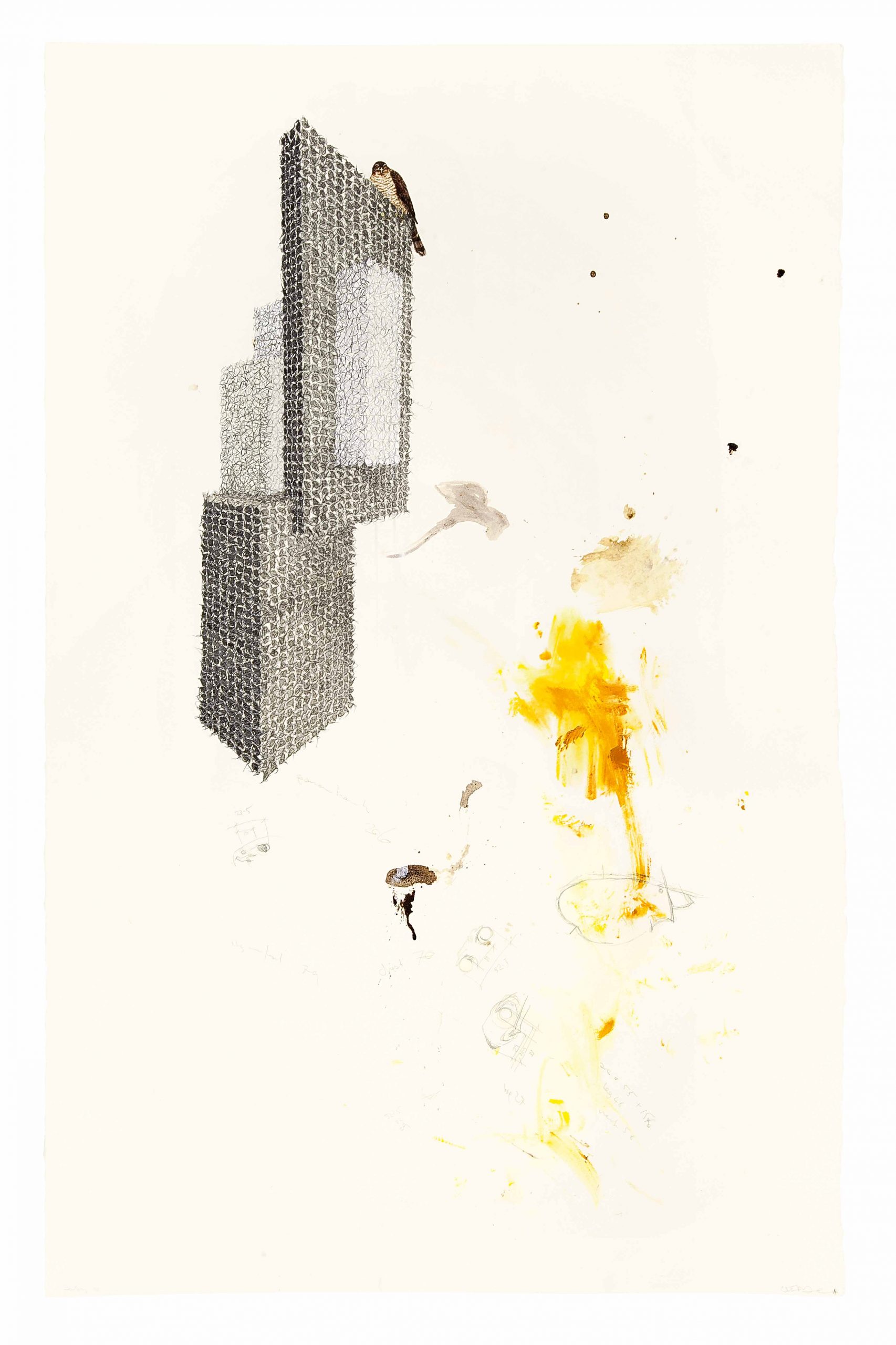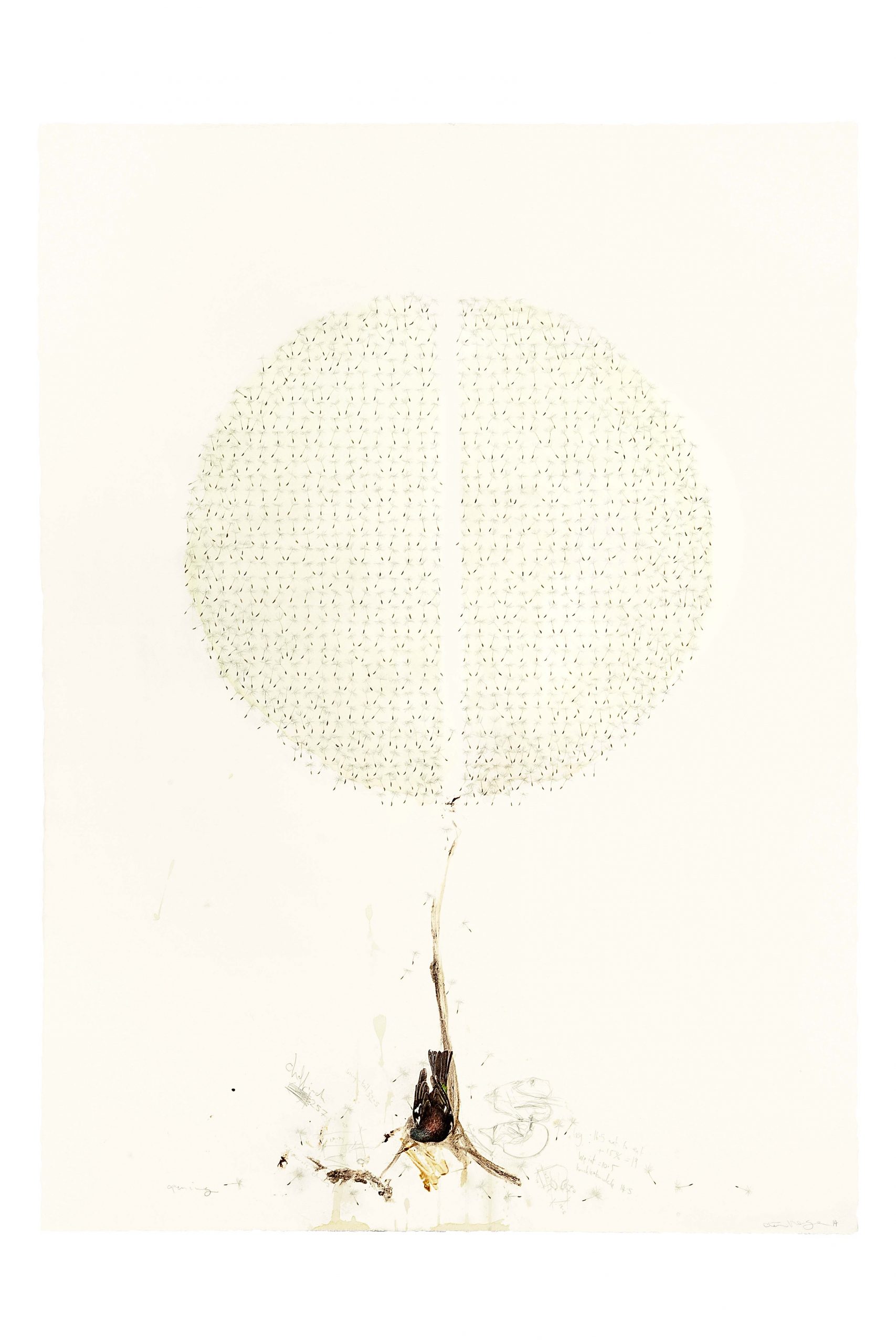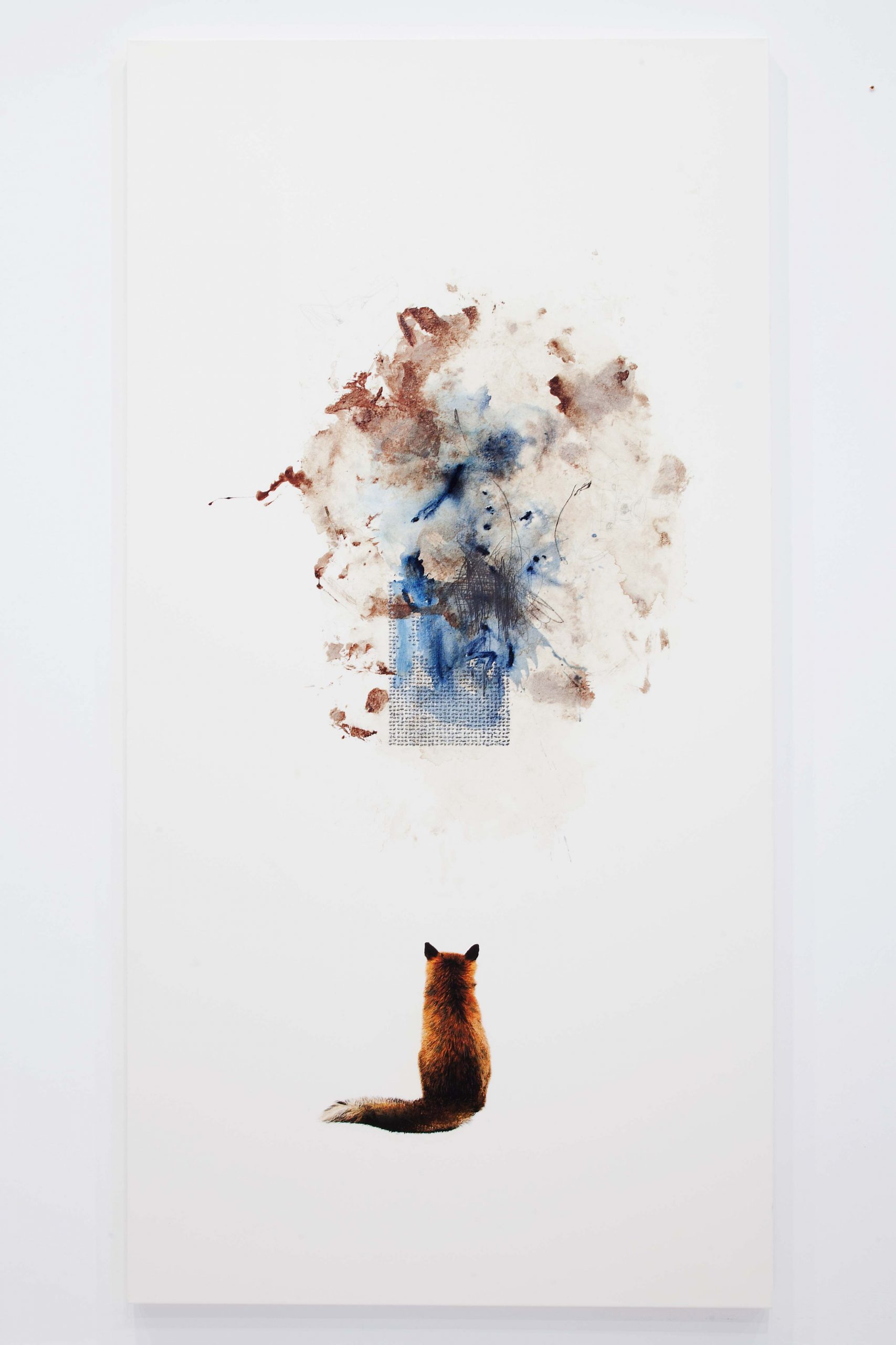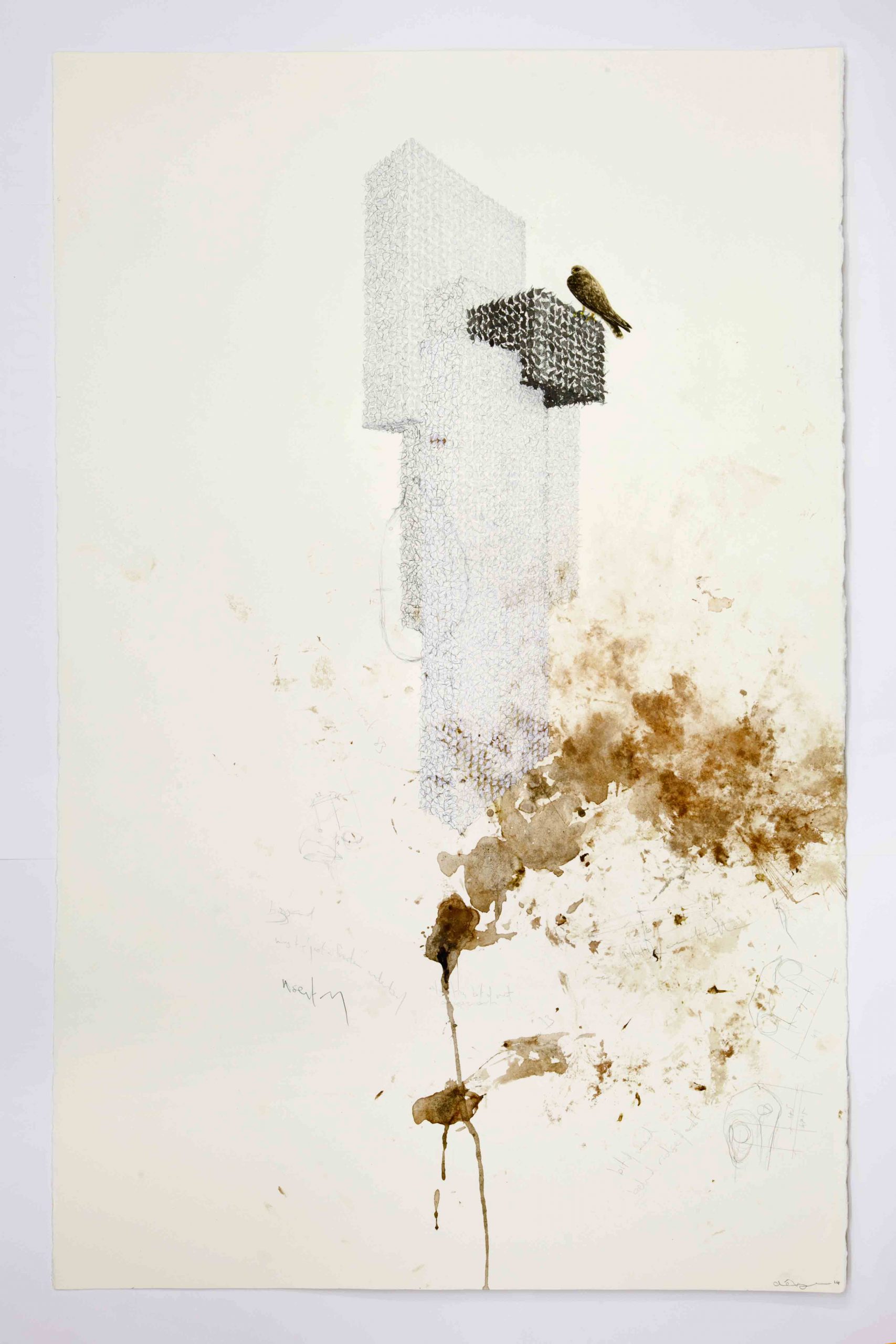 Pencil, watercolour, egg tempera, taxidermy residues on paper, 101.5 x 67 cm, 2014