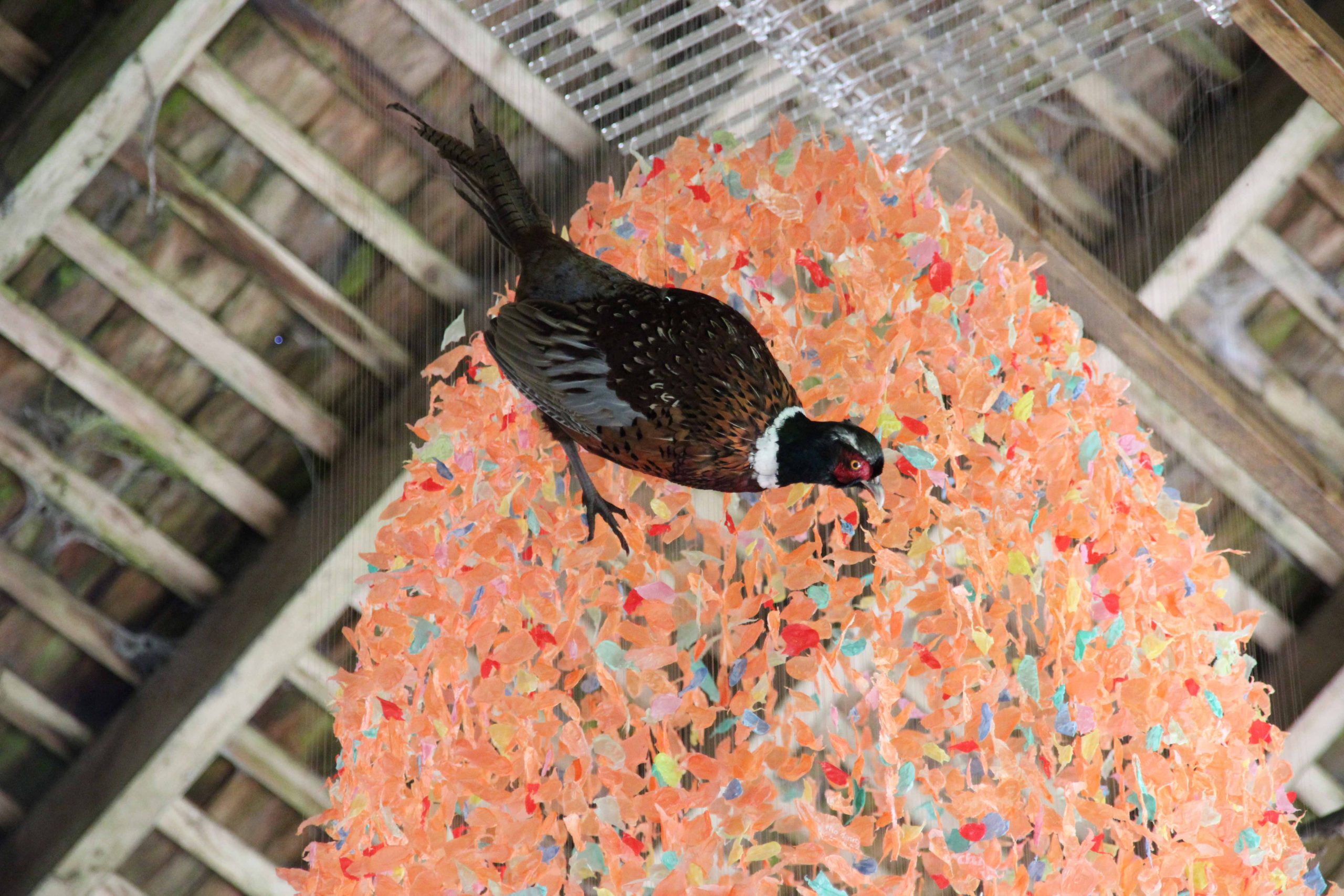 Pheasant (taxidermy), polythene, nylon, lead, 300 x 120 x 80 cm, 2014