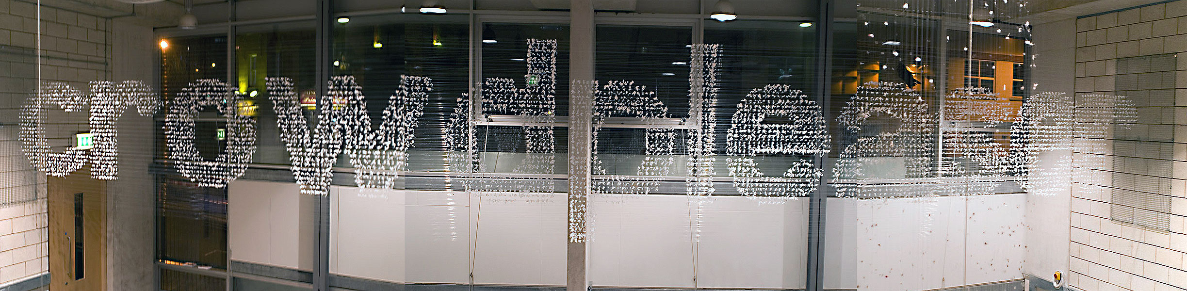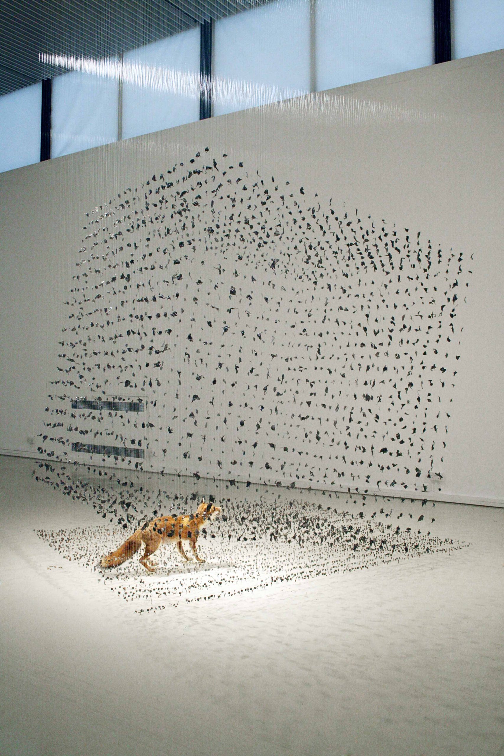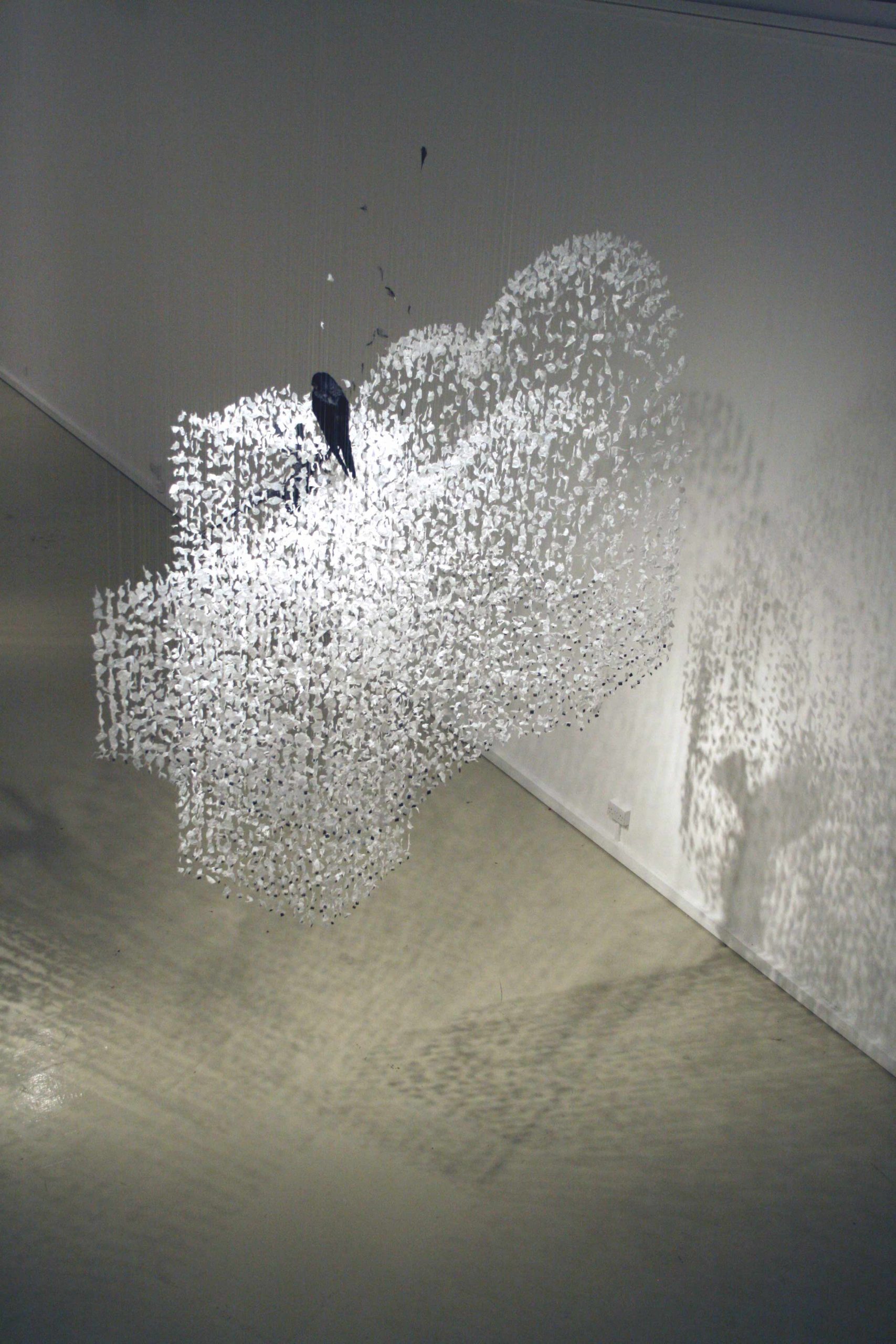 Crow (taxidermy), polythene, nylon, 200 x 1400 x 30 cm, 2006