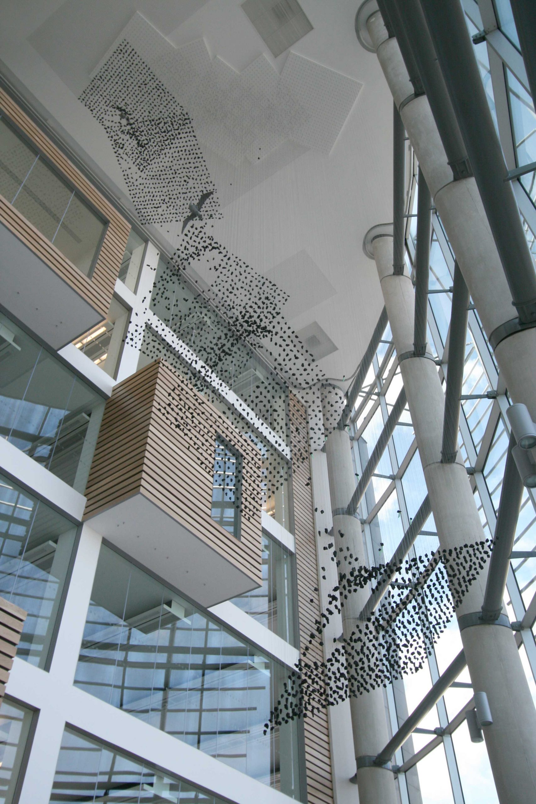 Cast iron herring gulls, coke, stainless steel cables, metal fixings, 1700 x 500 x 700 cm, 2009