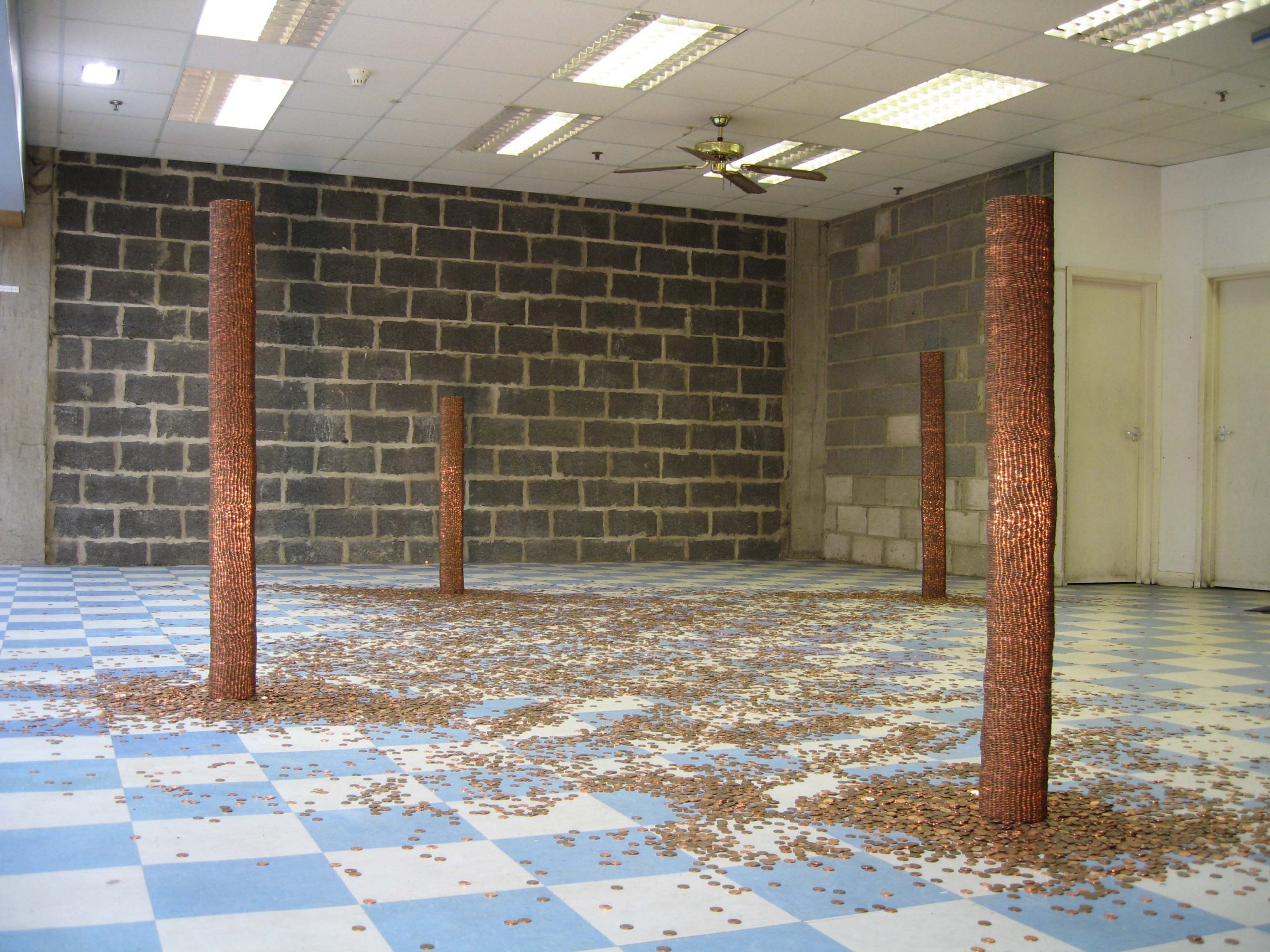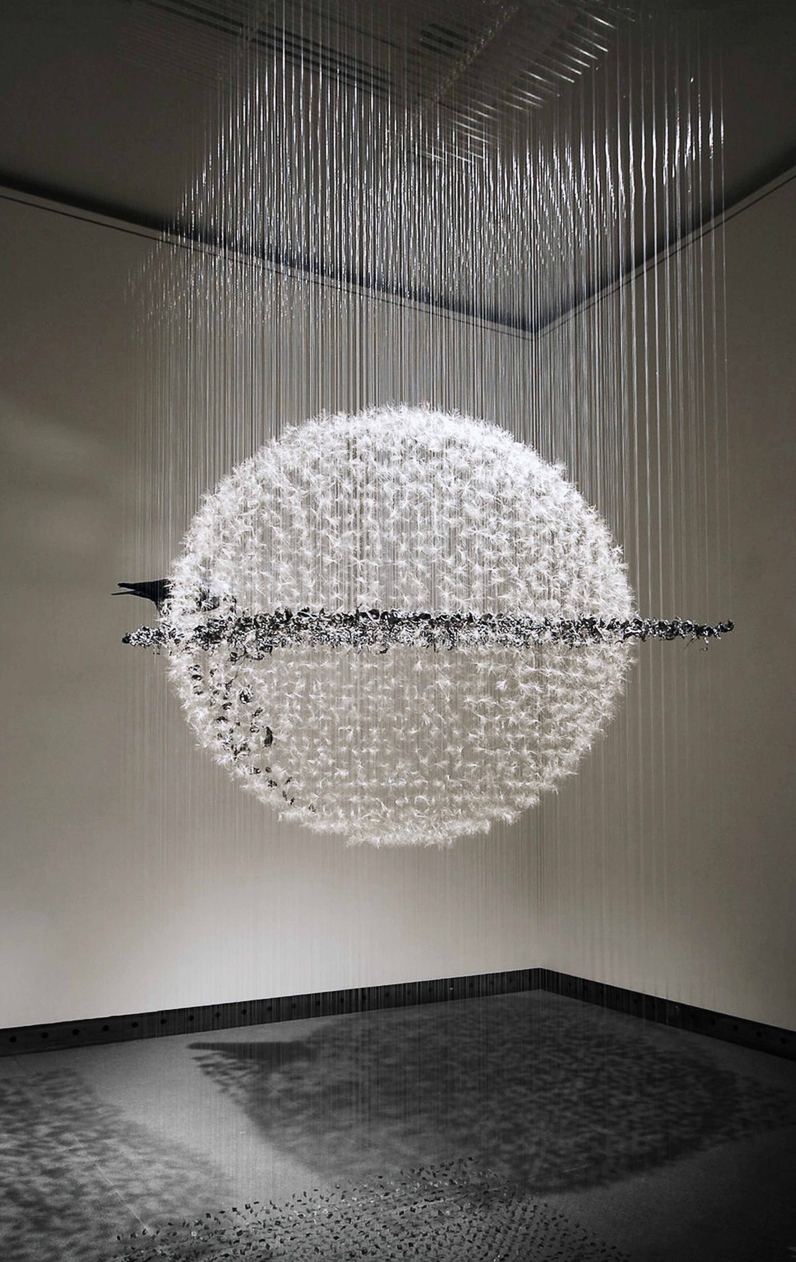 Dandelion seeds, nylon, lead, dimensions variable, 2004