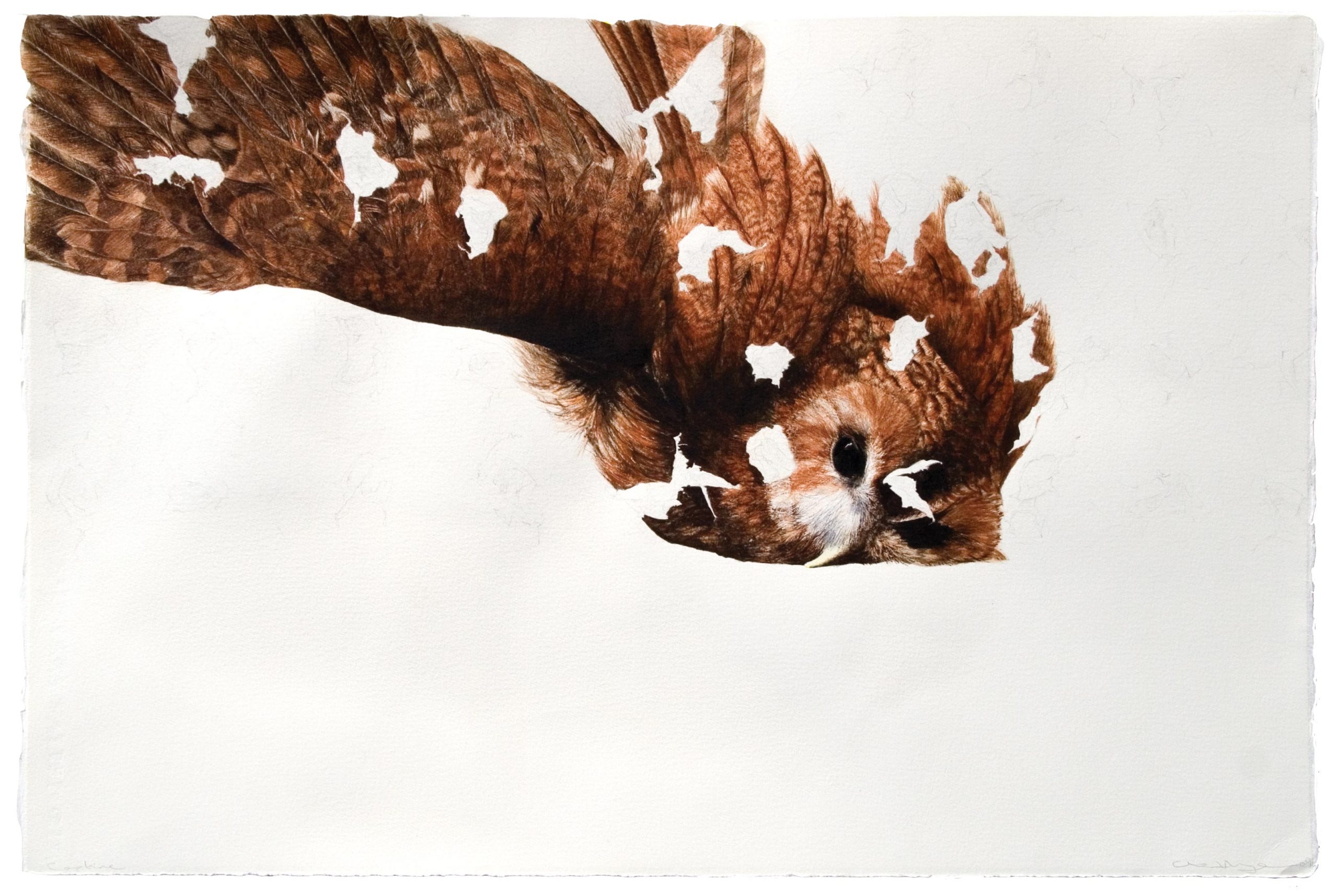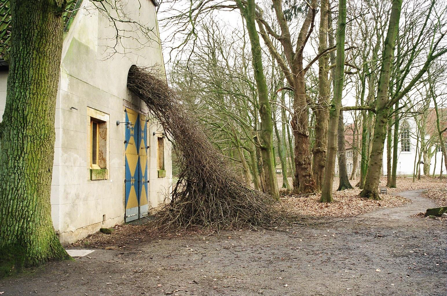 Wren (taxidermy), dandelion seeds, nylon, dead leaves, lead, 400 x 30 x 60 cm, 2007