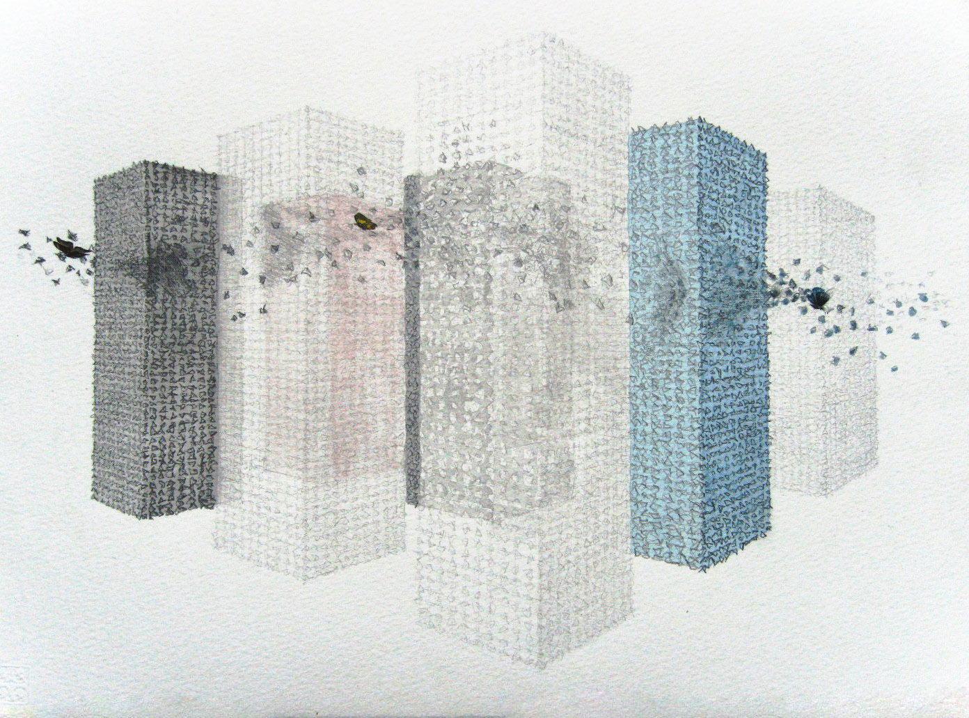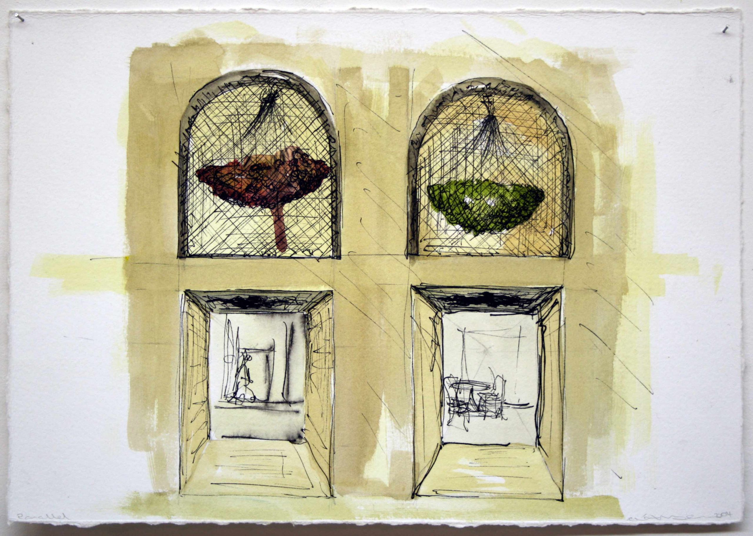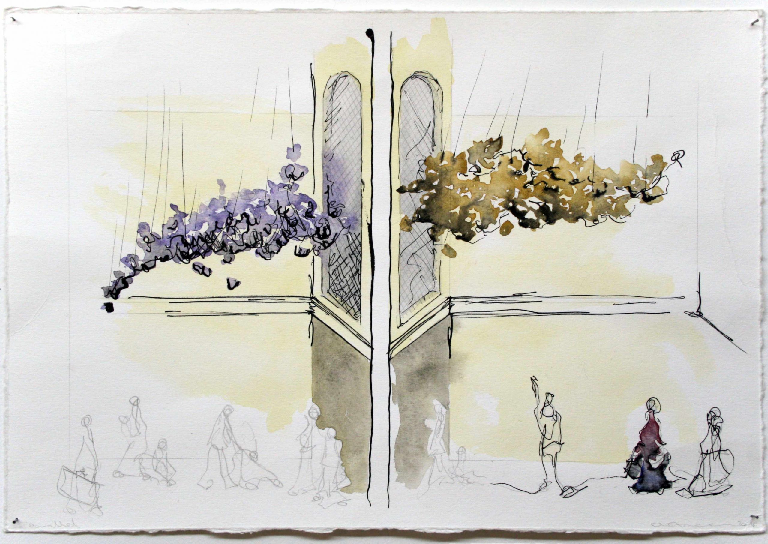 Watercolour, pencil and ink on paper, 26 x 38 m, 2004