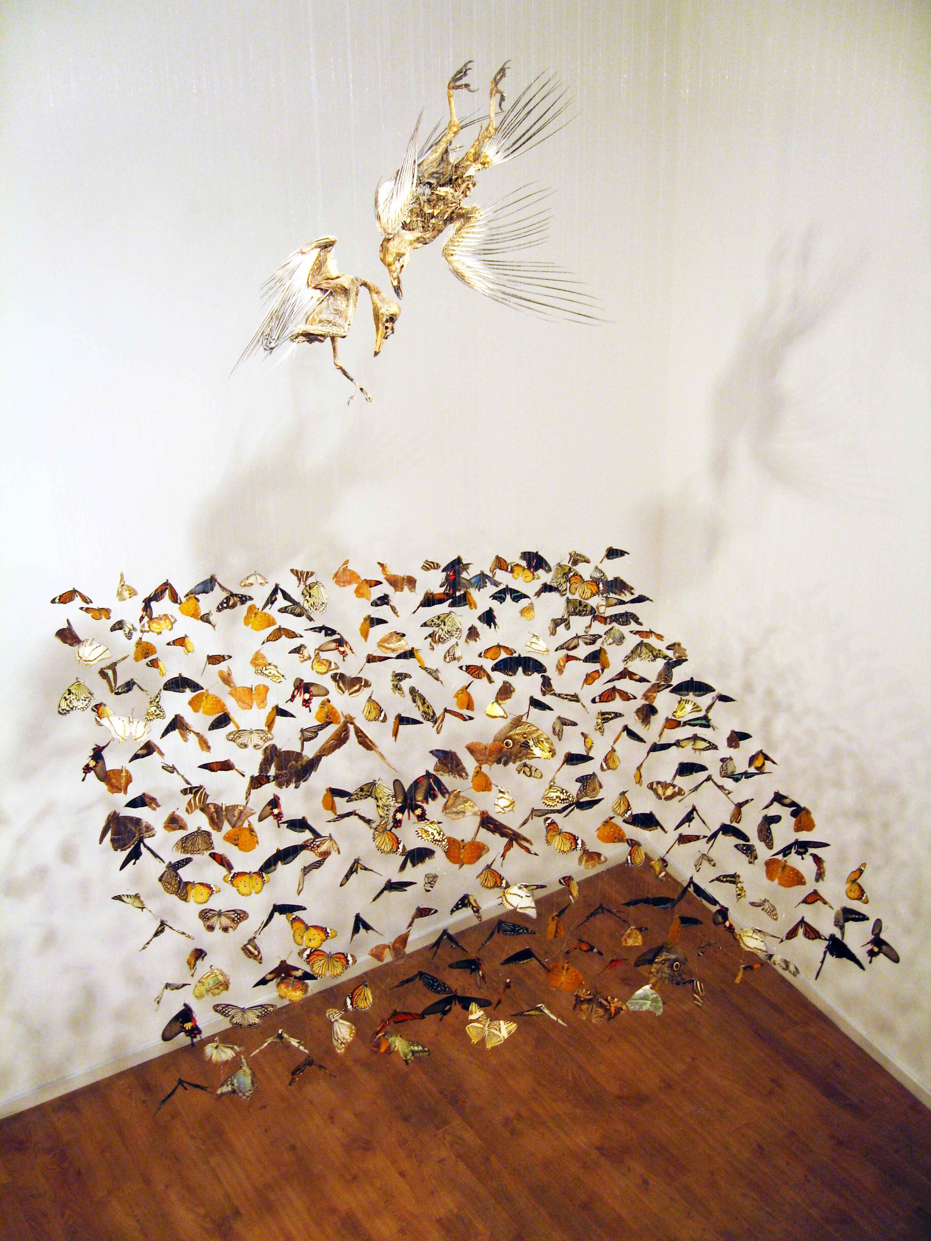 Butterflies, skeletal crows, nylon, dimensions variable, 2007
