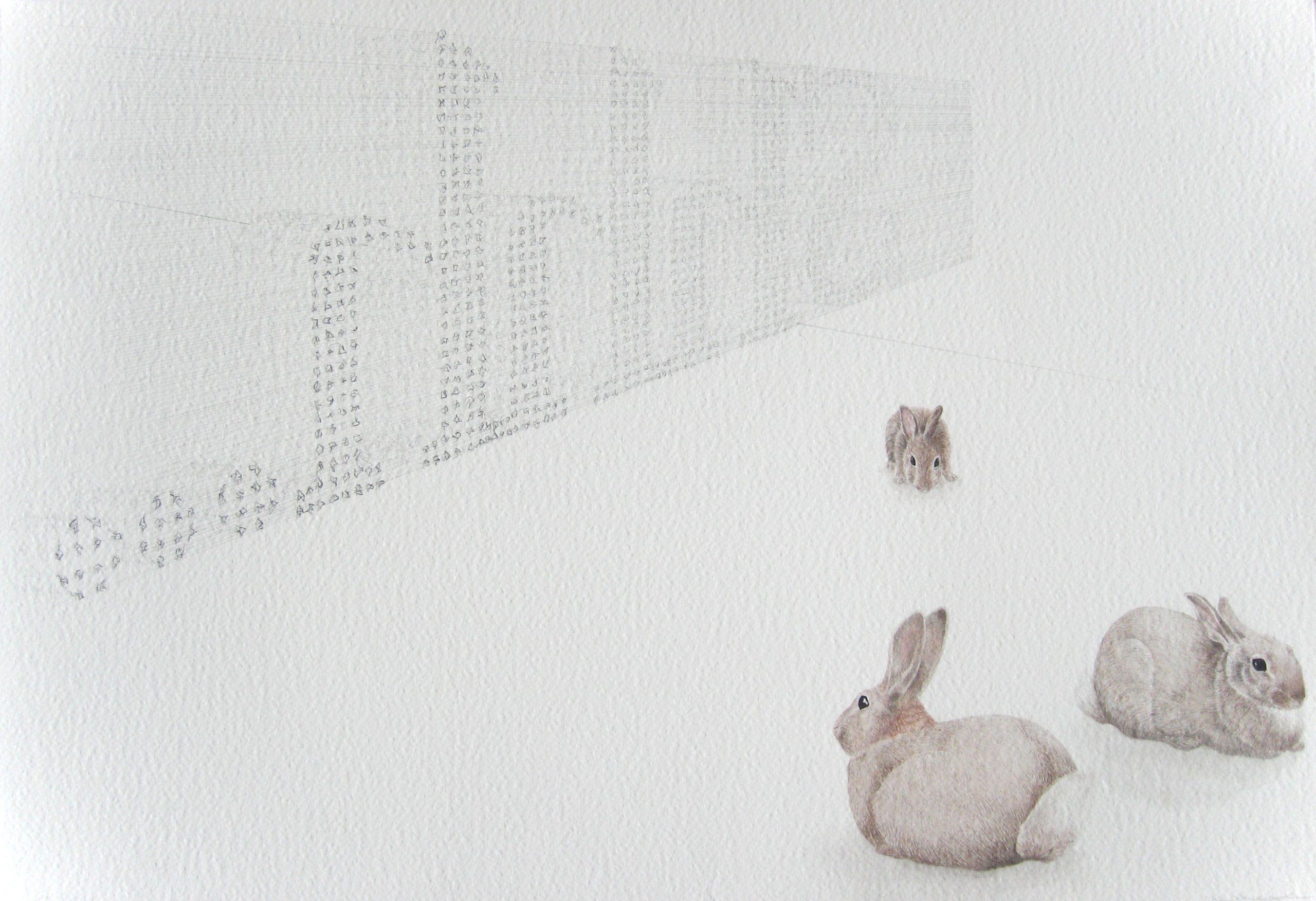 Pencil and fruit fly residue on paper, 77 x 57 cm, 2009
