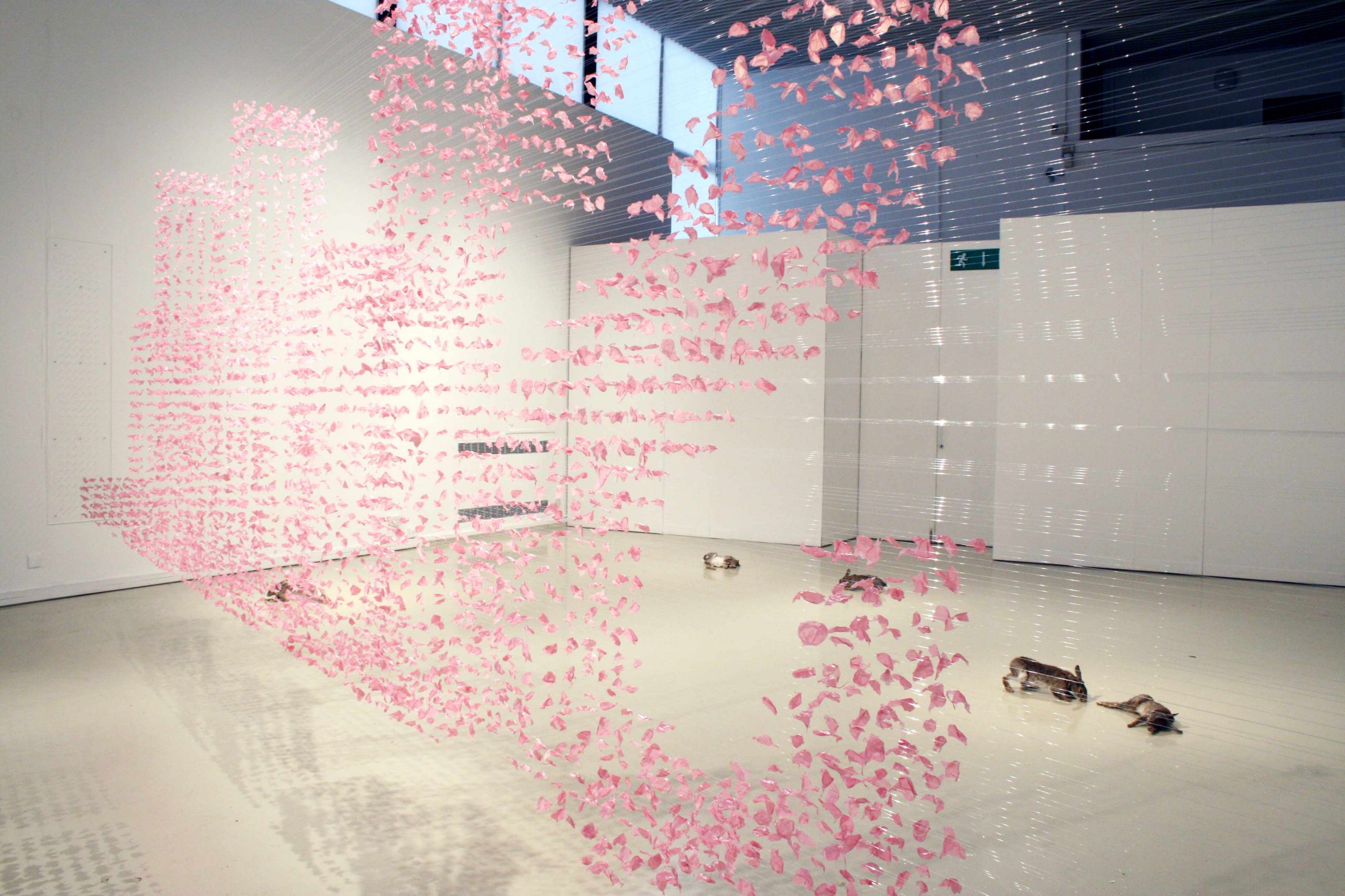 Rabbits (taxidermy), polythene, nylon, acrylic, dimensions variable, 2008