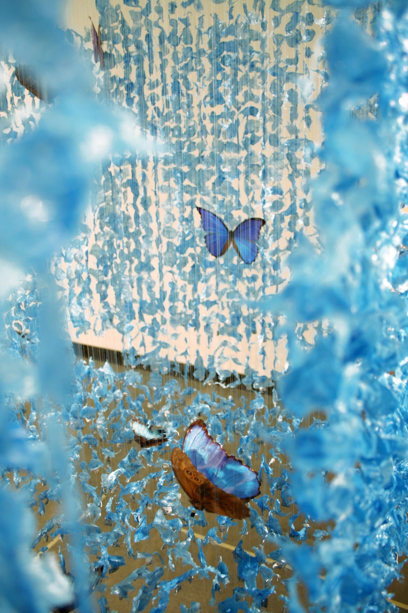 Morpha butterflies, polythene, lead, nylon, acrylic, 200 x 93 x 93 cm, 2009